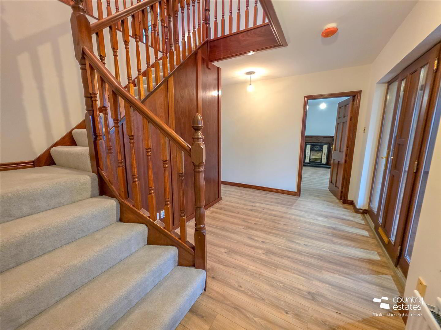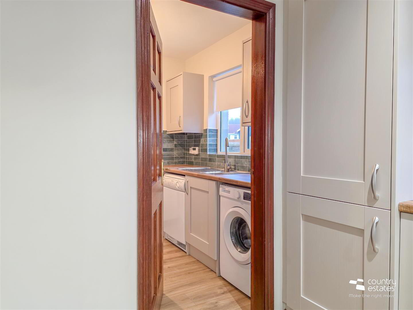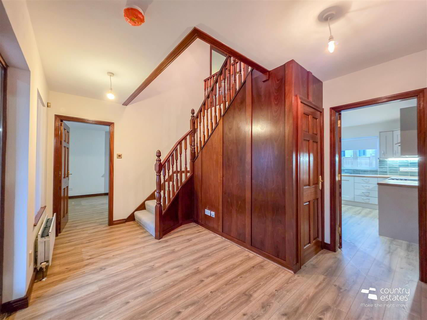 - Walk-in storage cupboard. Quality laminate plank flooring extending through ground floor level.