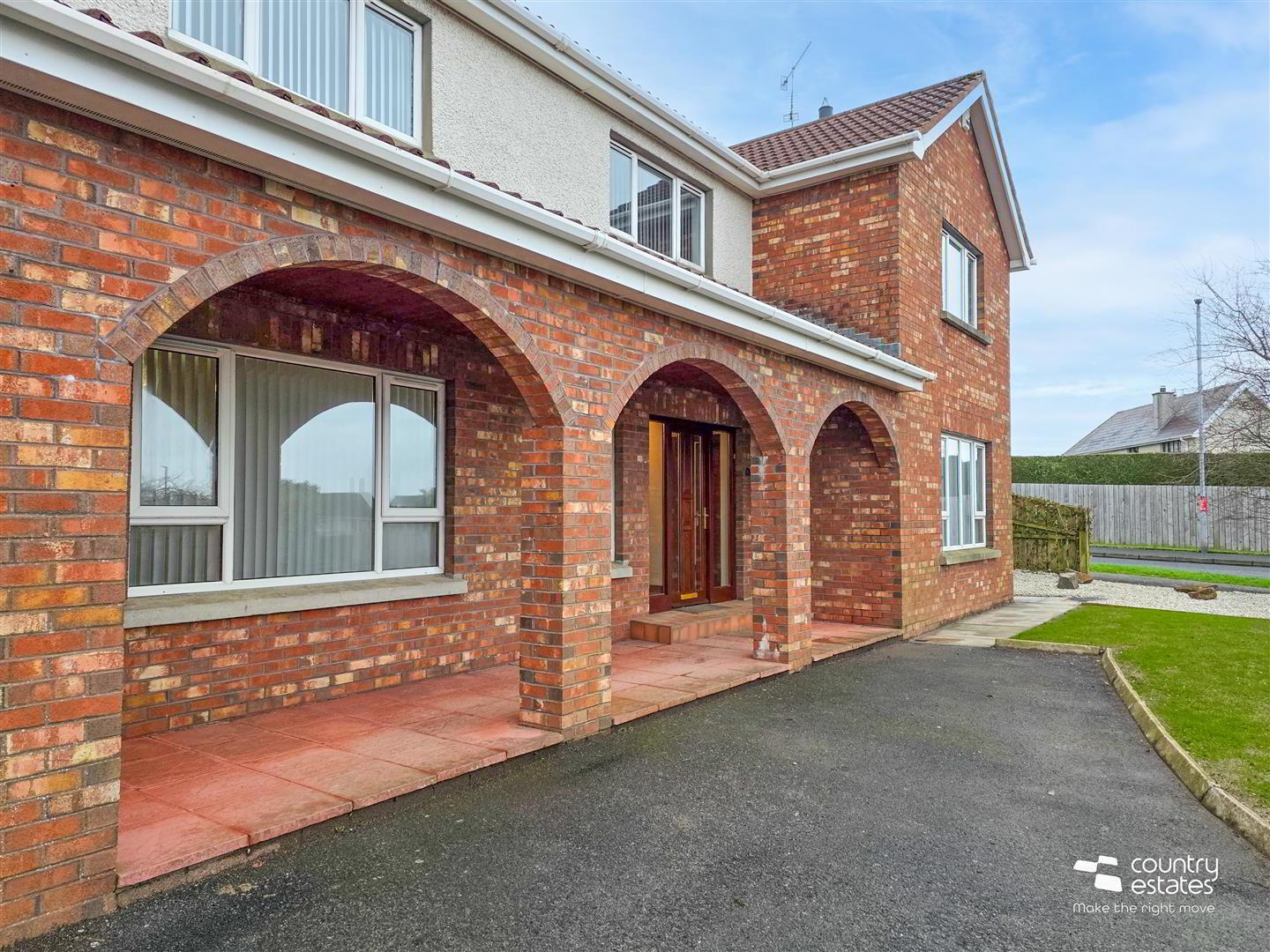 - Hardwood double glazed front door with full height double glazed side screens.