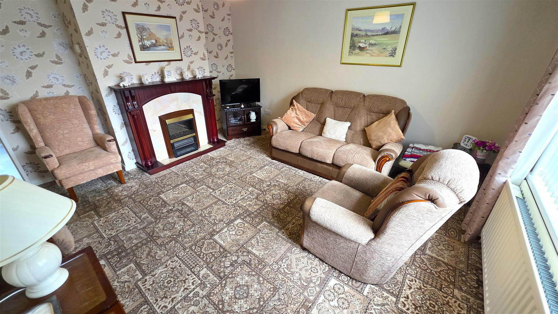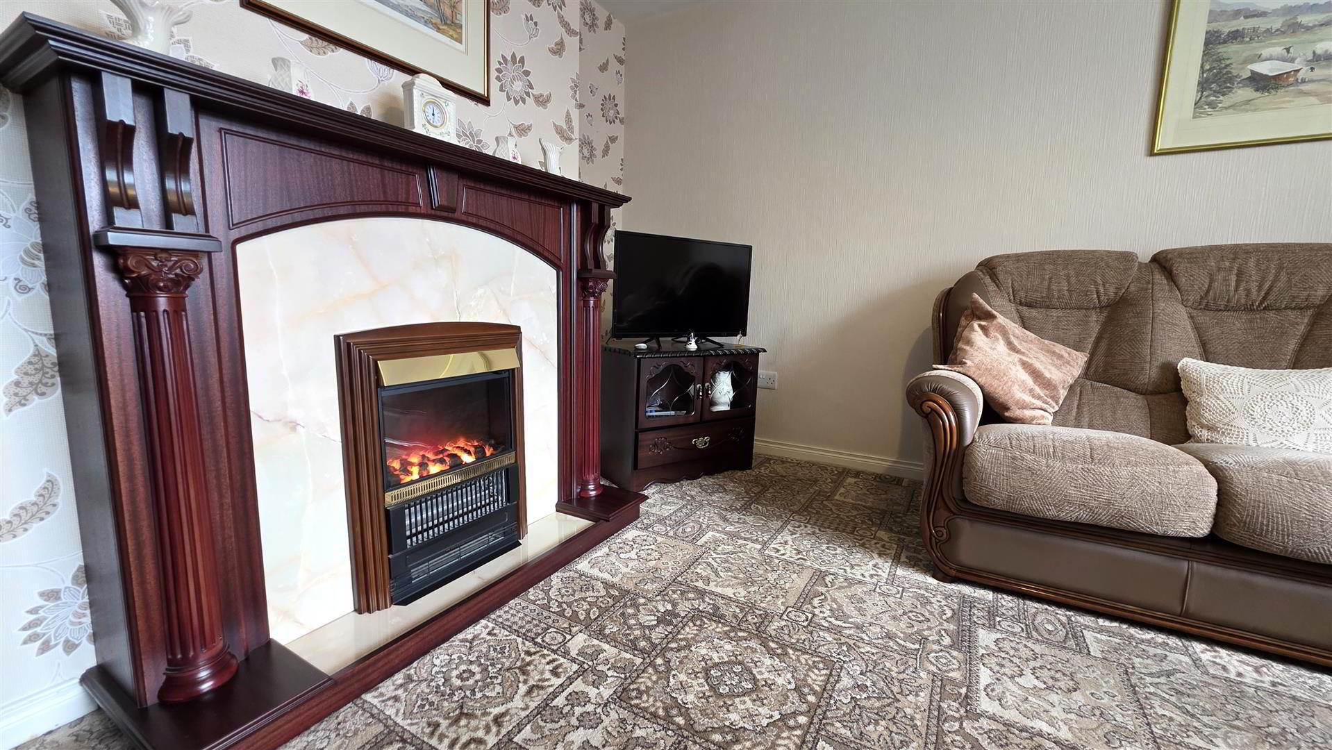 - Feature electric fire with decorative mahogany surround. Double radiator. 6 panel bevelled glass door to;