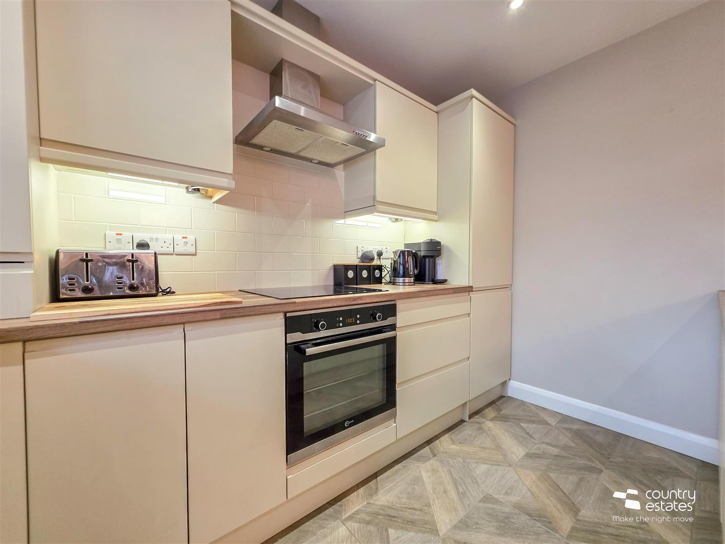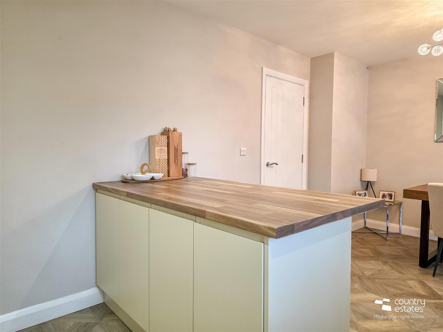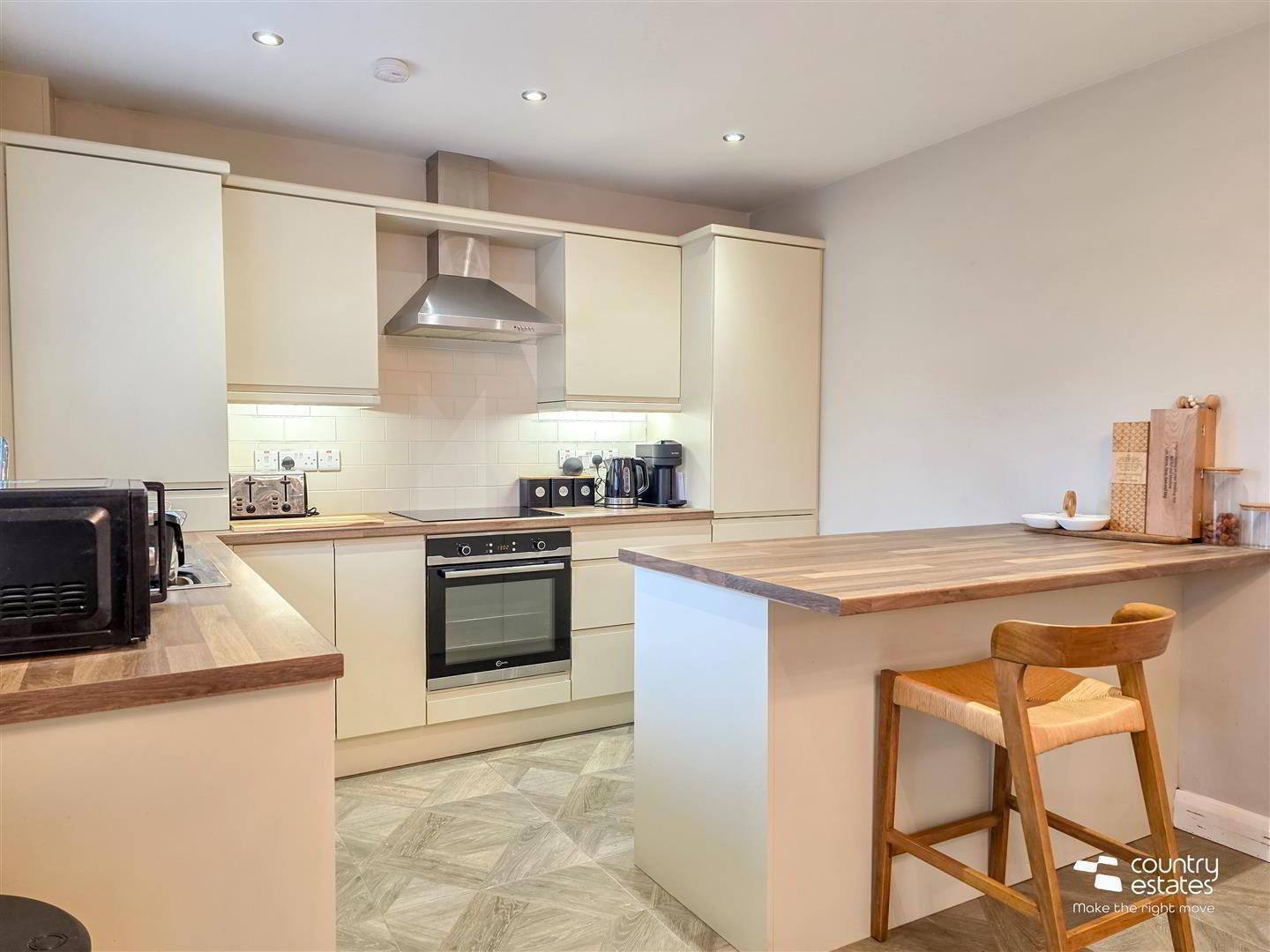 - Equipped with a comprehensive range of high and low level shaker style fitted units and contrasting butcher block effect work surfaces. Single drainer stainless steel sink unit with swan neck mixer tap. Boasting a range of integrated appliances to include; Oven, separate four ring electric hob with overhead extractor fan housed in stainless steel canopy, dishwasher, washer/dryer and fridge freezer. Fixed breakfast bar with low base units for storage and matching work surface. Ample space for casual dining. Part tiled walls in Metro brick style. Ceramic floor tiling. Recessed downlighting. Open into: