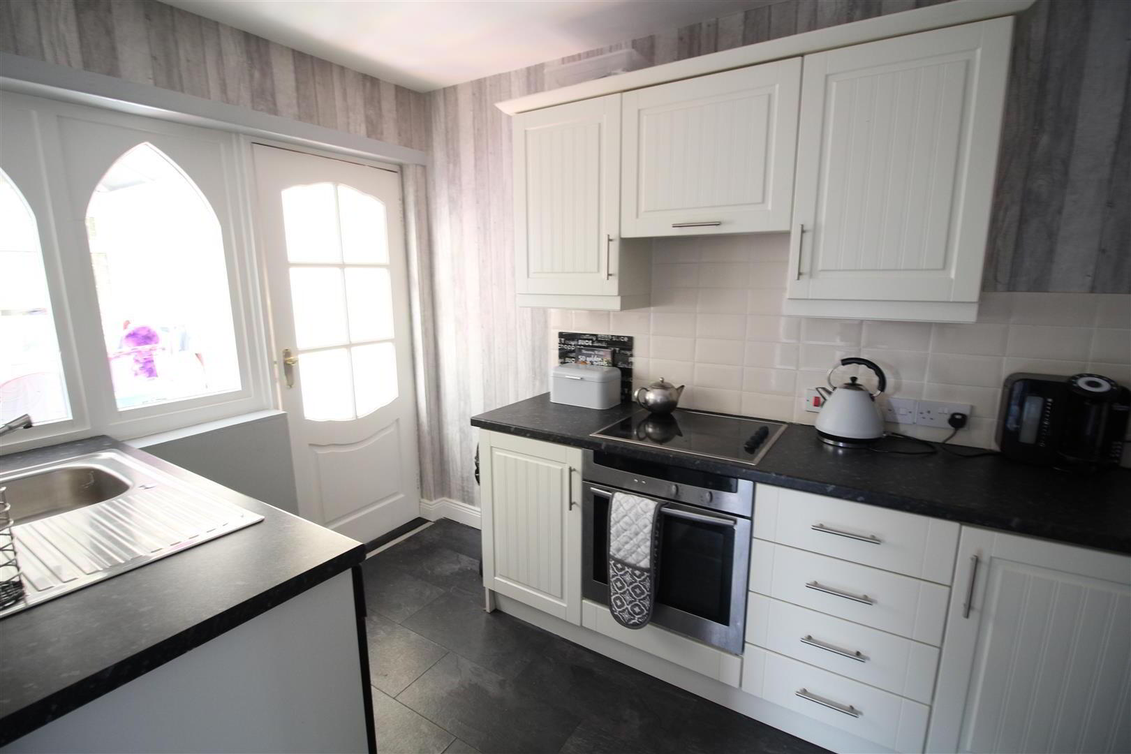Equipped with a comprehensive range of high and low level fitted units with contrasting work surfaces. Single drainer sink unit. Integrated oven with four ring hob. Overhead extractor fan. Plumbed for washing machine.