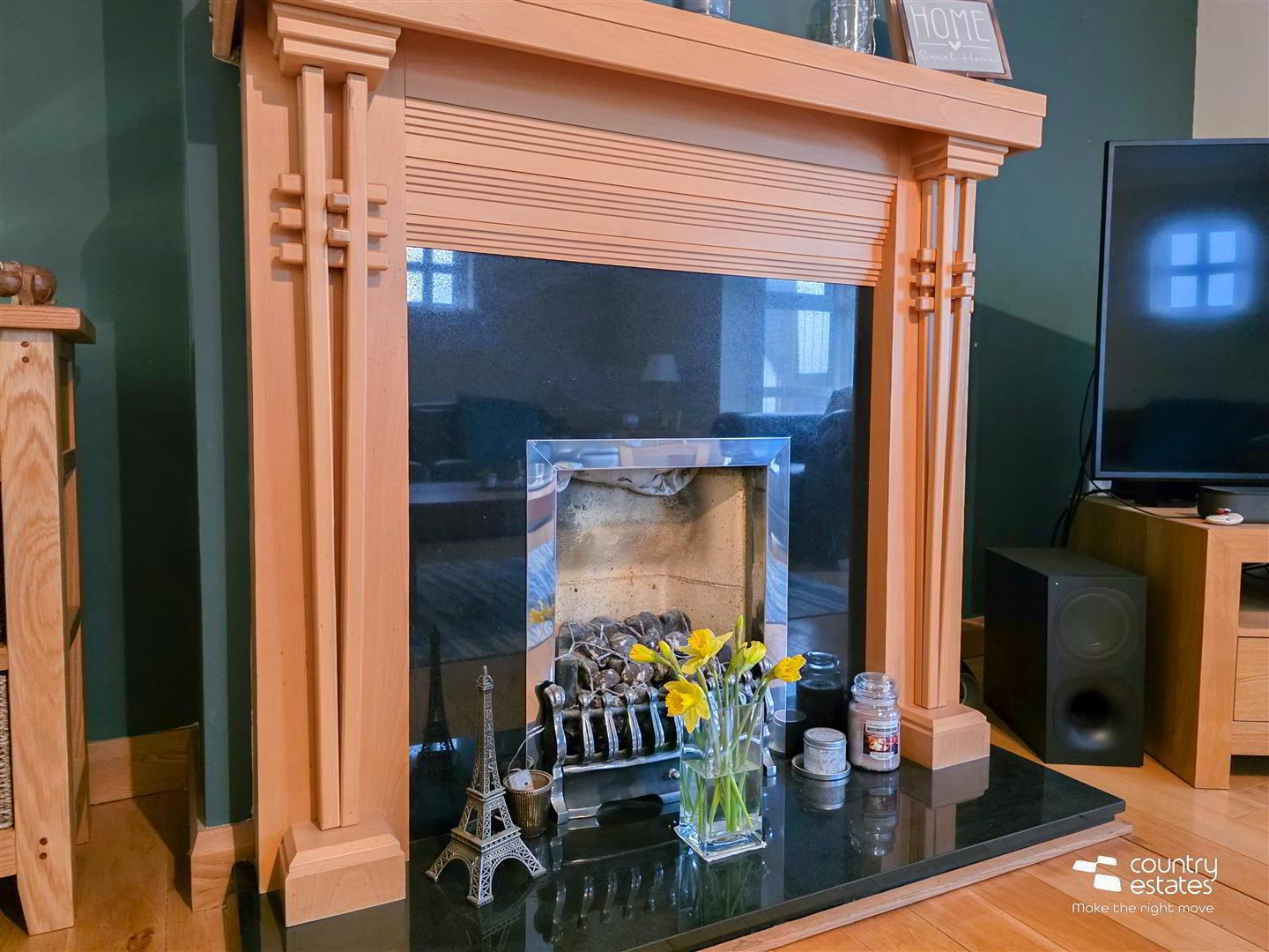- Into Bay window. Attractive feature fireplace with granite surround and hearth. Hard wood flooring.