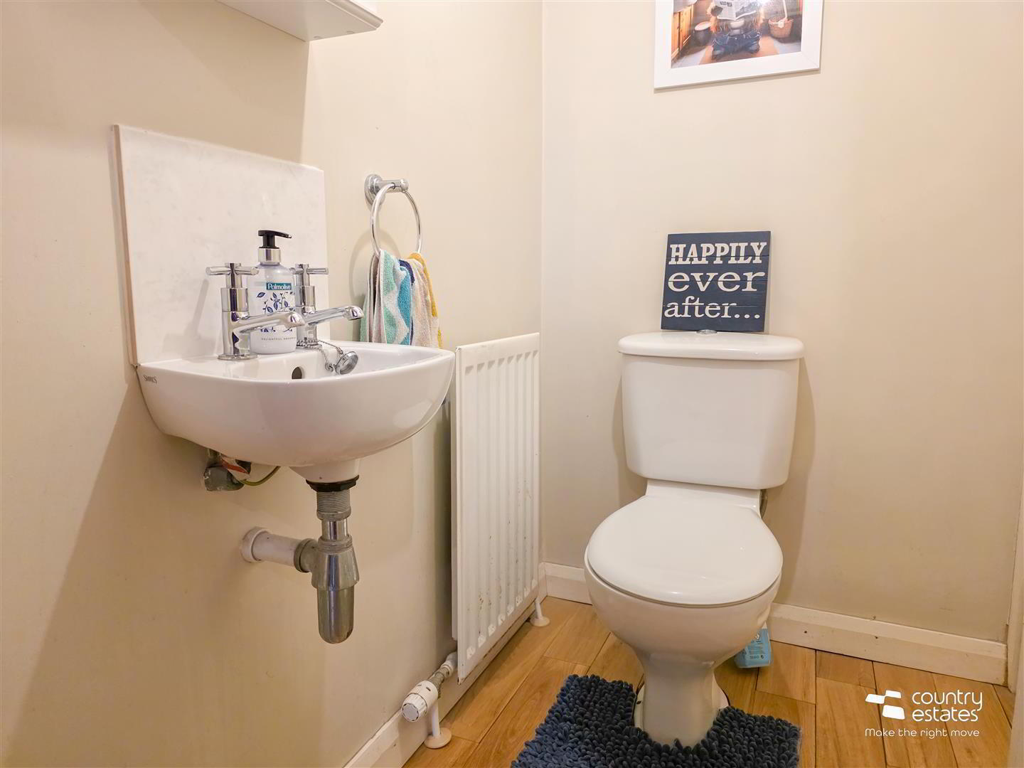 - Comprising wall mounted wash hand basin and a button flush WC. Under stairs storage cupboard.