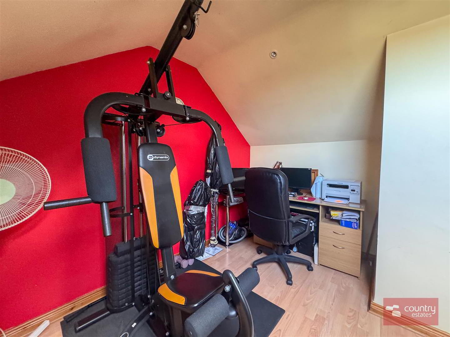 Access to floored roof space via foldaway wooden steps. Excellent storage facility. Velux window.