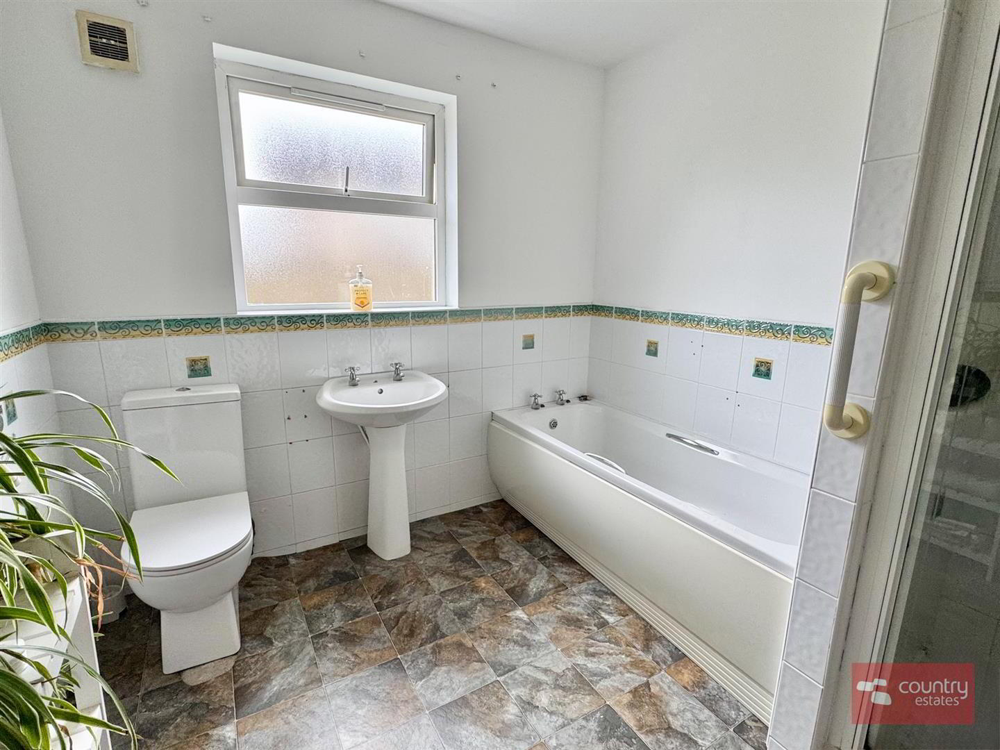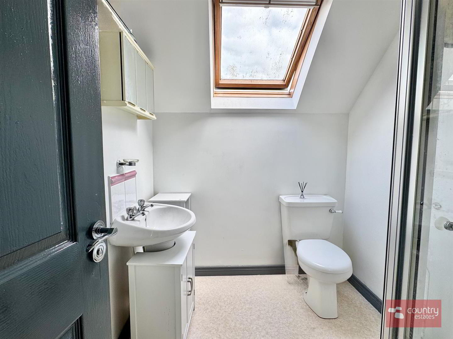 - Comprising low flush w.c, pedestal wash hand basin and fully tiled shower cubicle. Velux window.