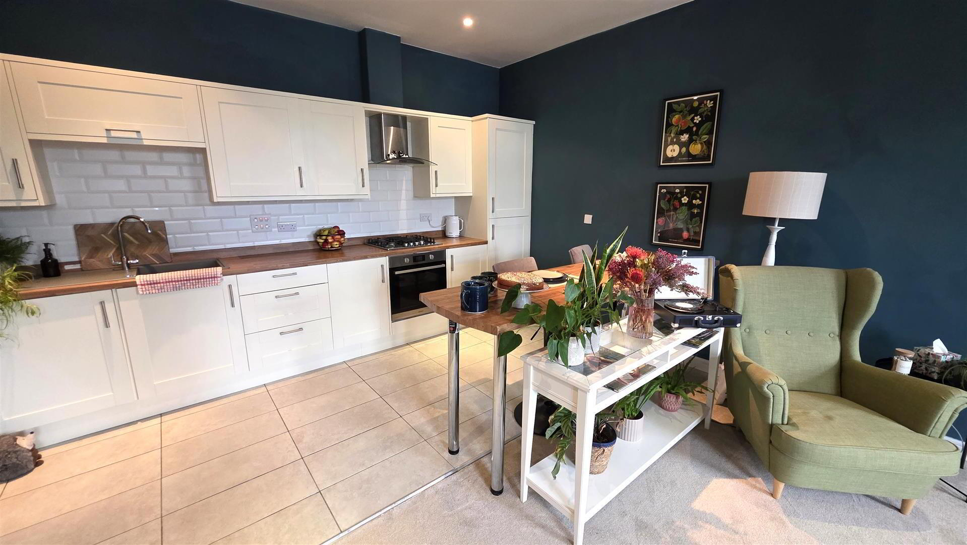This stylish home features a recently fitted cream Shaker-style kitchen, open plan to a bright and spacious living and dining area — perfect for modern living. There are two well-proportioned bedrooms, including a principal bedroom with ensuite and a second bedroom benefiting from integrated storage. In addition the modern bathroom suite features a panel bath with shower over offering further convenience.