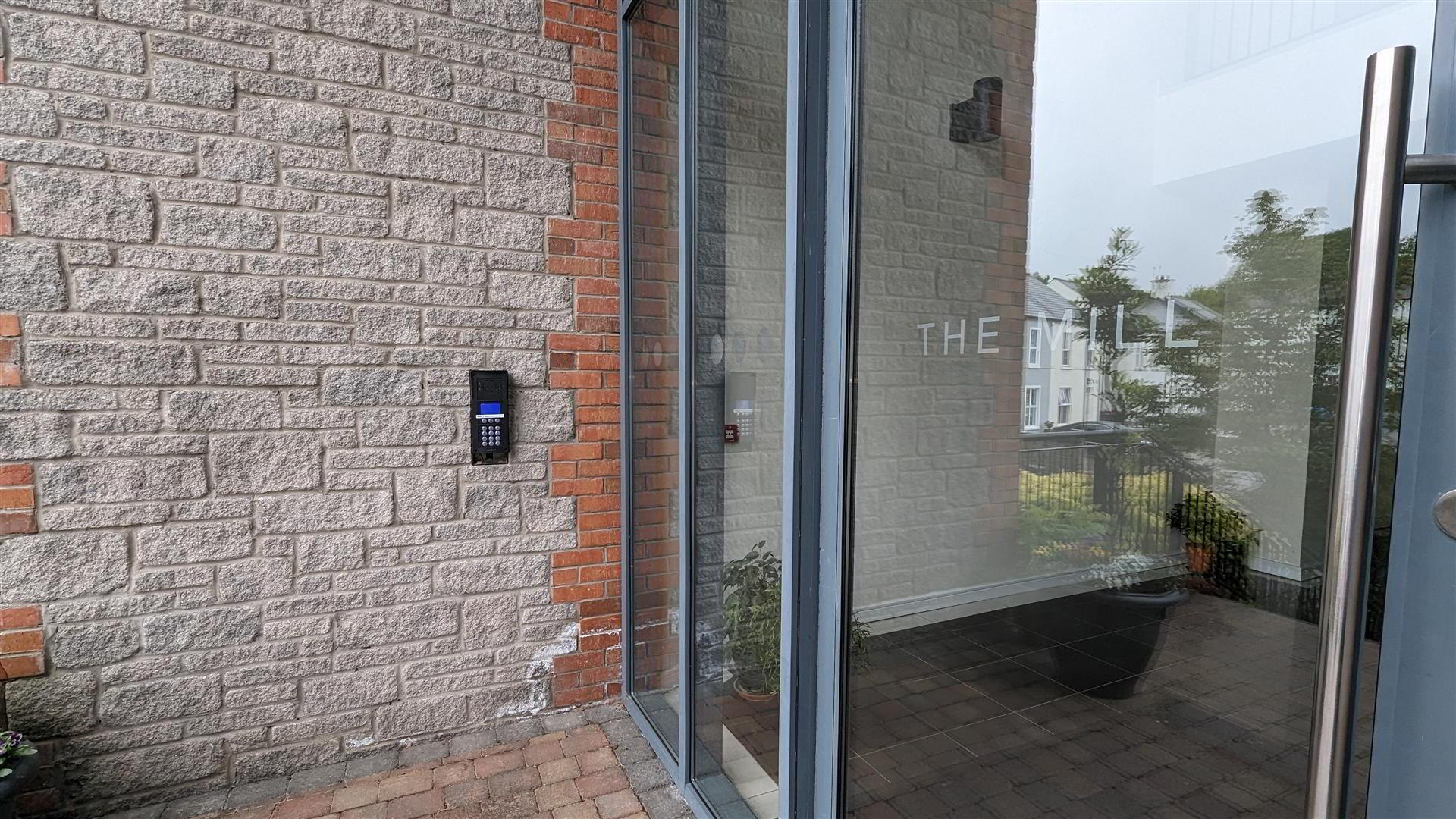- Tegula brick steps to front elevation with associated metal work railings and adjoining easy access ramp to external landing. Brick edged double height feature entrance arch with recessed full height glazing and large format fully glazed entrance door to. Push button door entry intercom to: