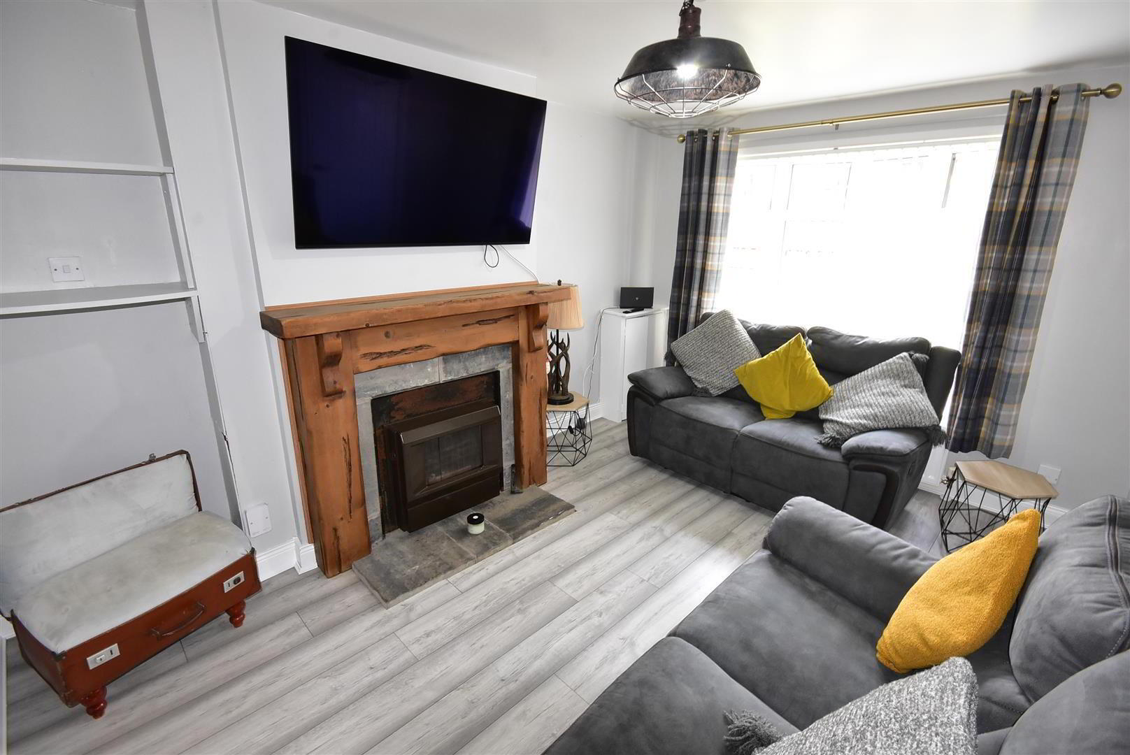 - Front bay window. Rustic pine surround with tiled inset and quarry tiled hearth. Inset glass fronted fire. Laminate floor. Double radiator. Open archway to;
