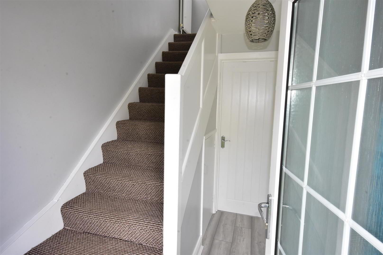 - Staircase to first floor. Under stair storage. Wood laminate floor.