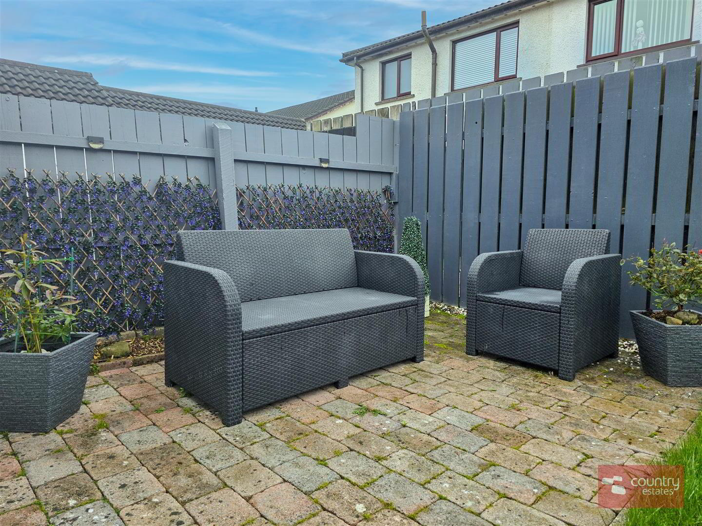 Private enclosed garden to rear in lawn with block paved walkways and patio areas. Screened by perimeter fence.