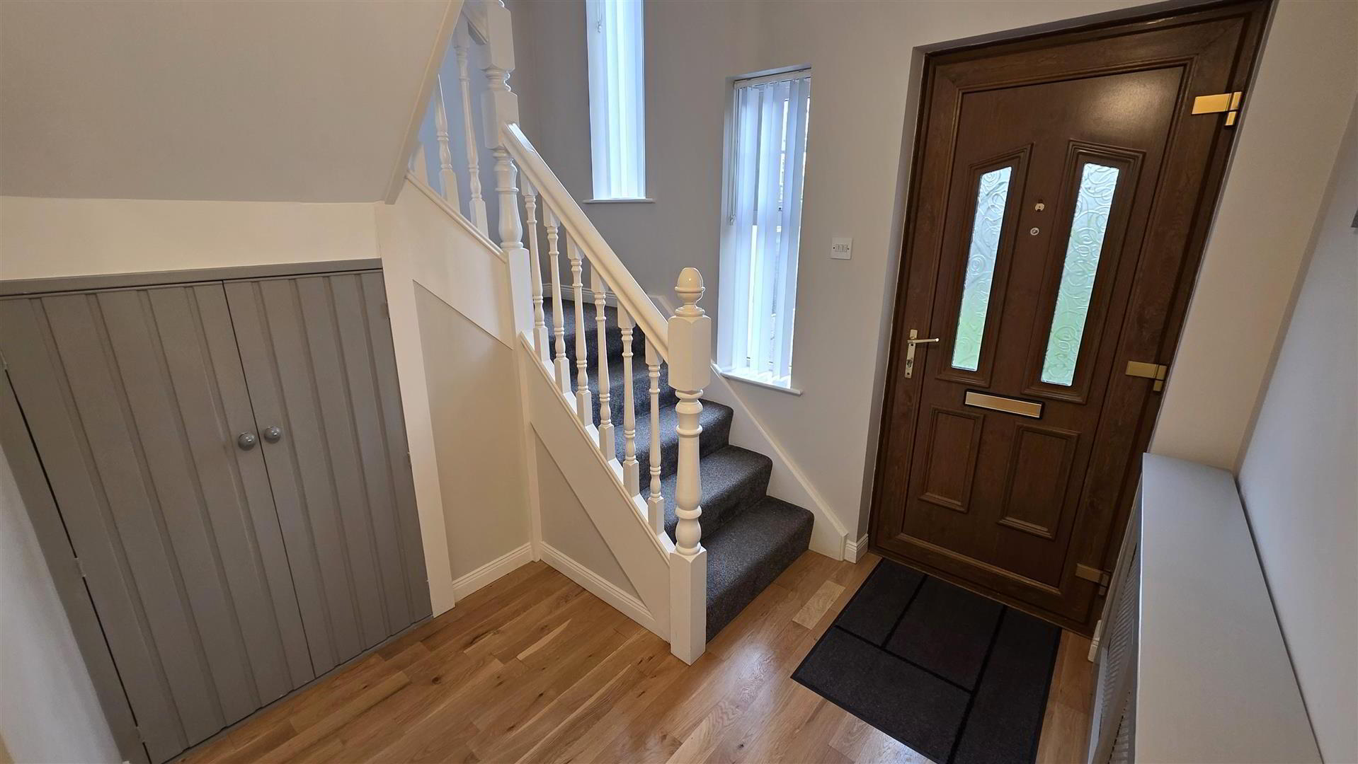 - Single radiator. Understair storage. Staircase to first floor with moulded hand rail and turned balustrade. Solid wood floor. Single radiator.