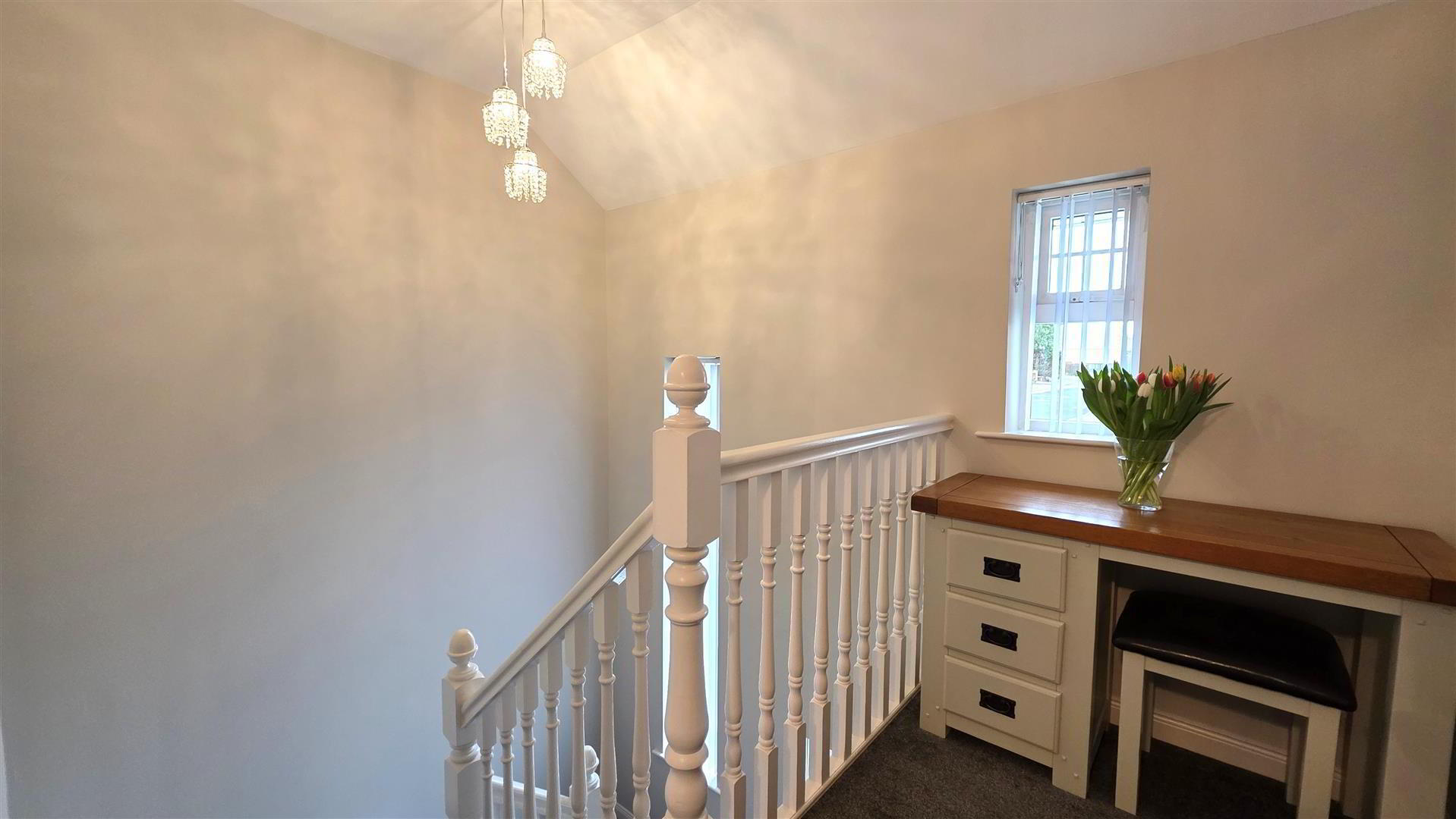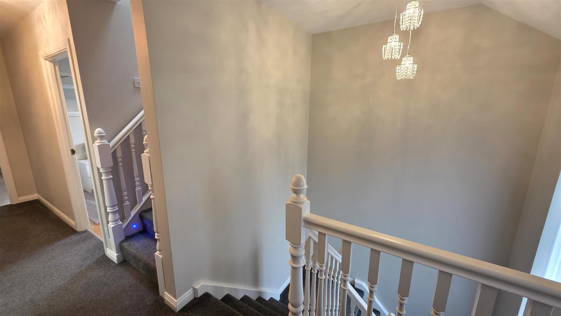 - Staircase to second floor with moulded handrail and turned balustrading. Feature bullet lighting to stairs. Single radiator.