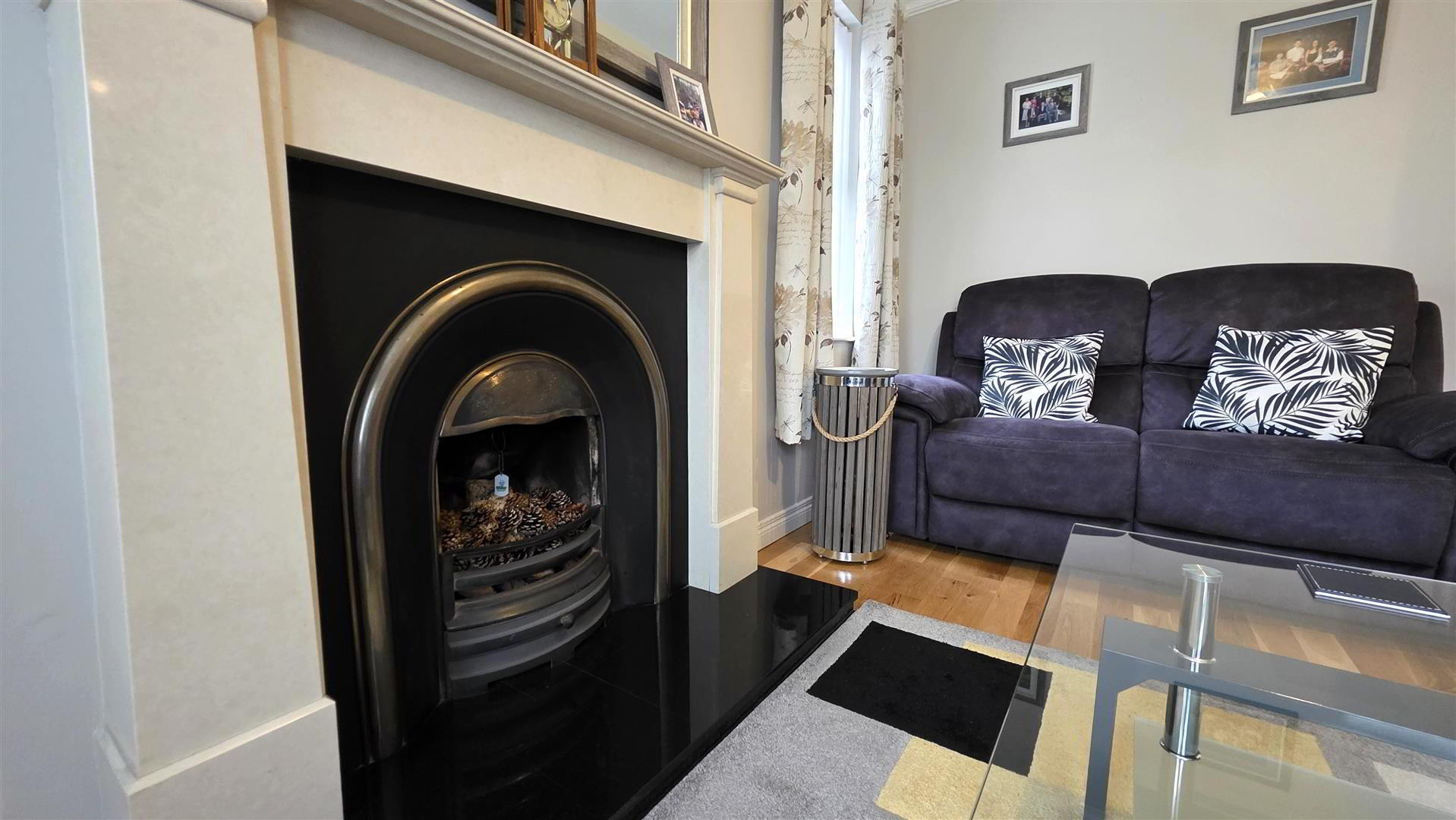 - Open fire with feature polished sandstone effect surround, part polished cast iron inset and polished granite hearth. Solid wood floor. Dual aspect windows. Double radiator.