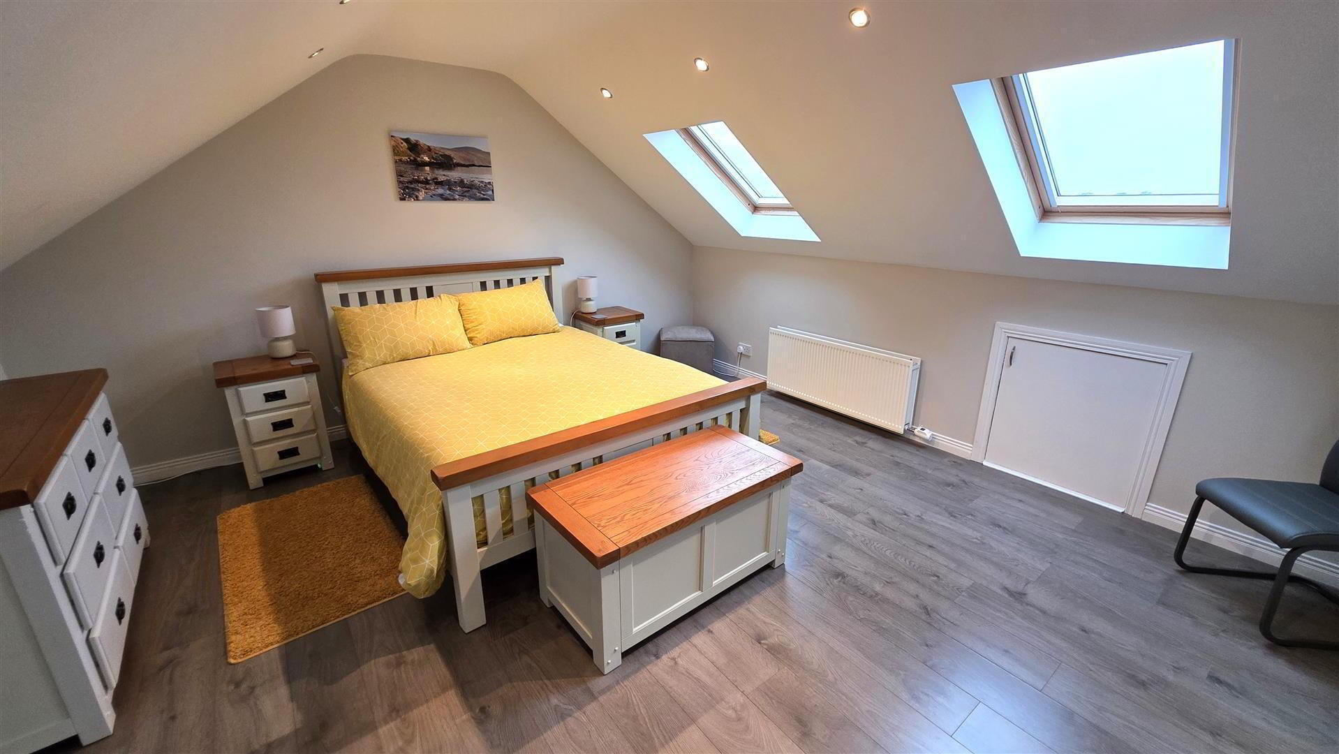 - Views towards Lough Neagh and the Sperrin Mountains. Single radiator. Wood laminate floor