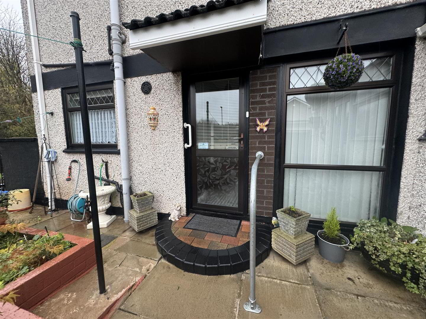 - Pedestrian gate to front to neat well maintained garden finished in lawn with mature plants and shrubs. Paved pathway to front door. Mature conifer hedging and well stocked border. Fully enclosed yard area to rear. Paved patio. Raised flower beds. PVC tank. Outside tap. Pedestrian gate to rear. Screened by brick wall.