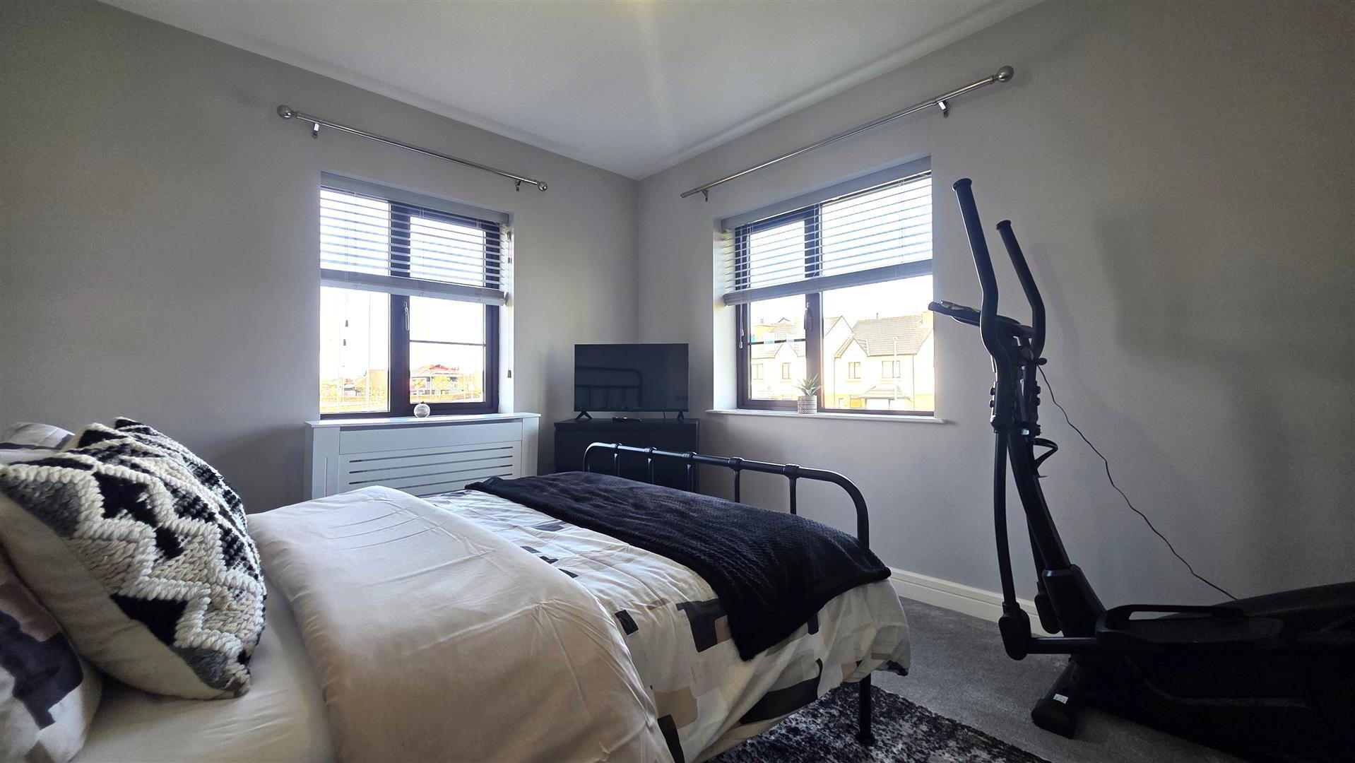 This beautifully presented two-bedroom quad home features a bright and spacious open-plan kitchen, living and dining area, complete with a full complement of integrated appliances, ideal for modern living and entertaining. A convenient ground floor WC adds to the functionality of the space.