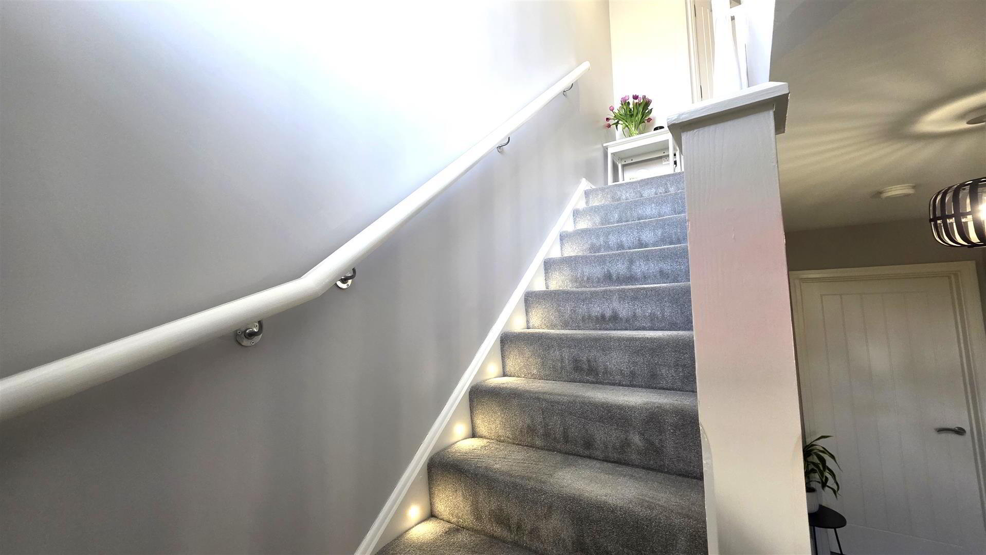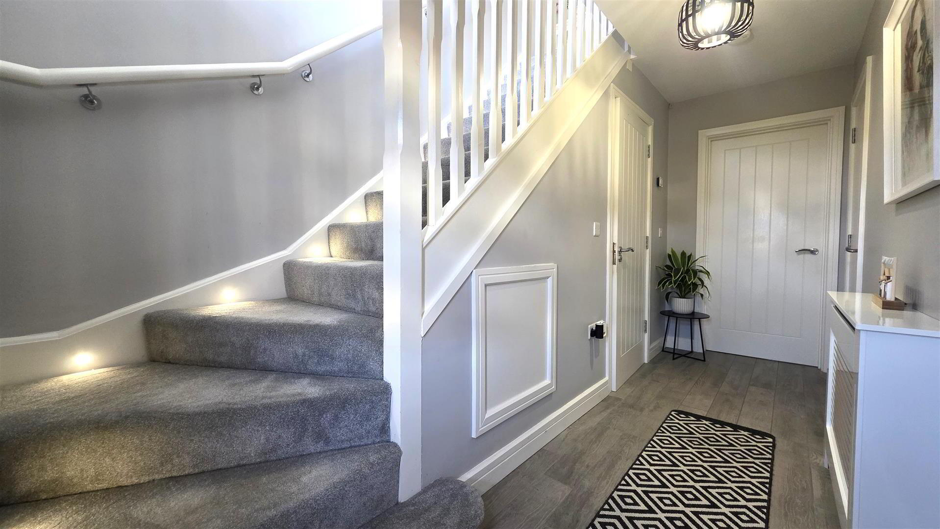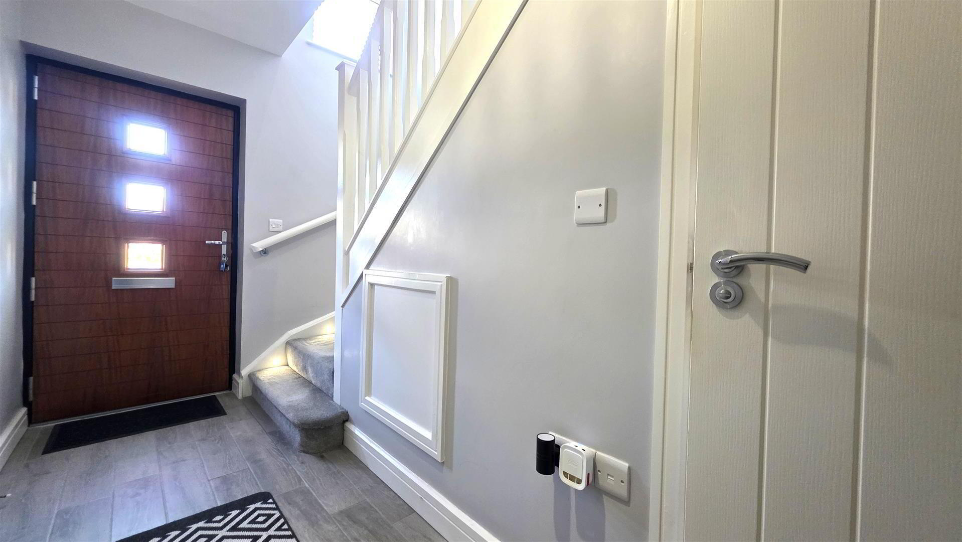 - Hard wood three panel double glazed door to entrance with fully tiled floor. Stair case to first floor with turned ballusrading and hand rail. Single radiator. Cloak cupboard.
