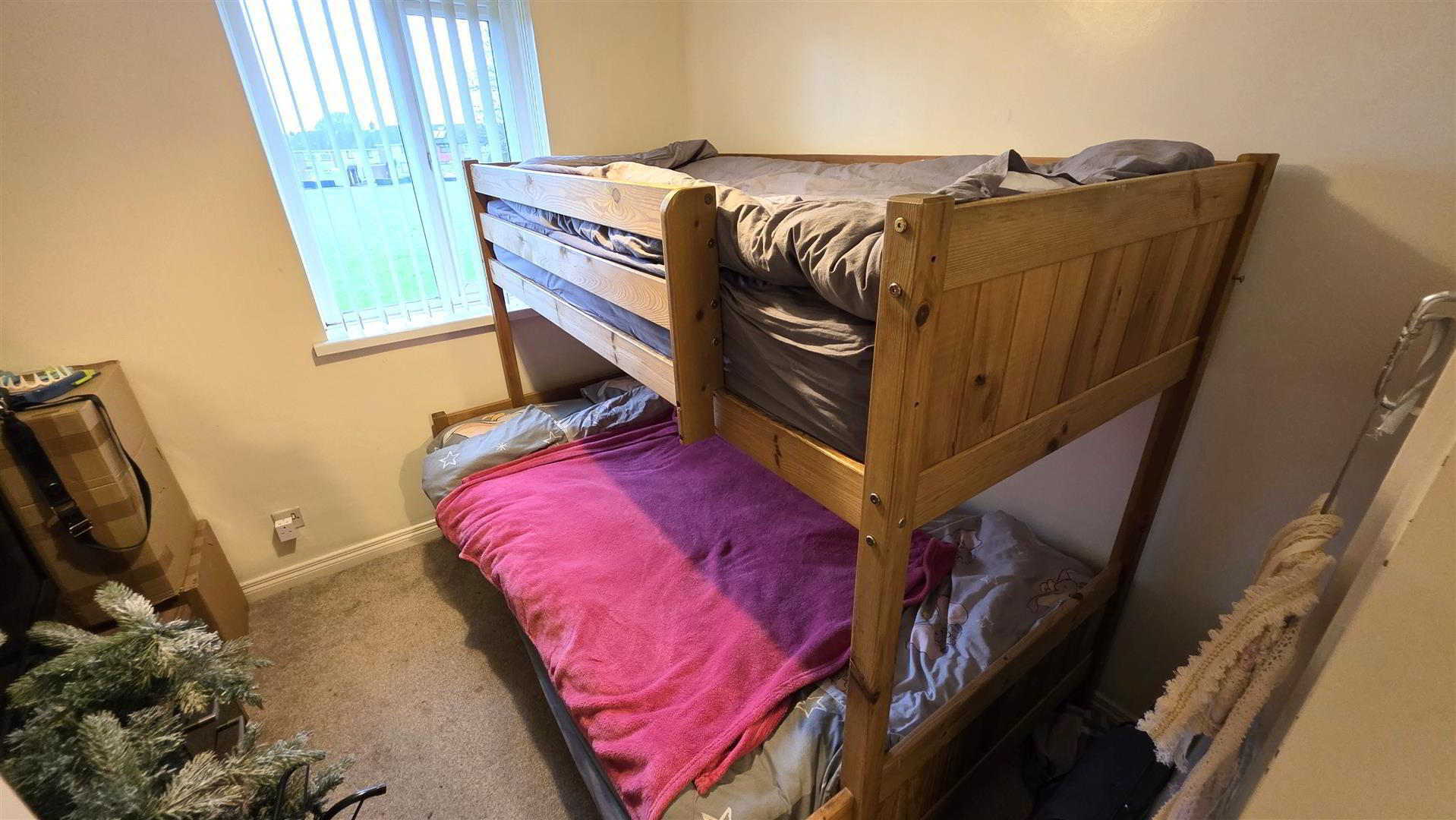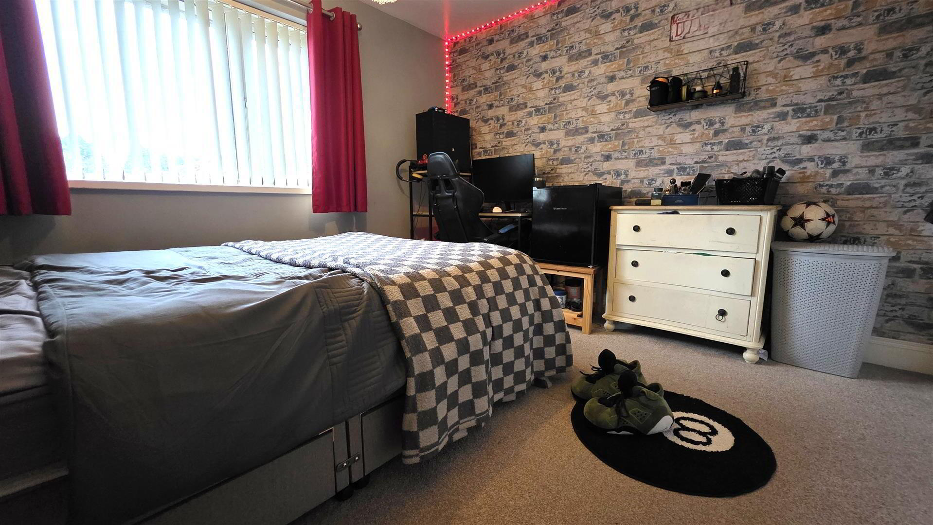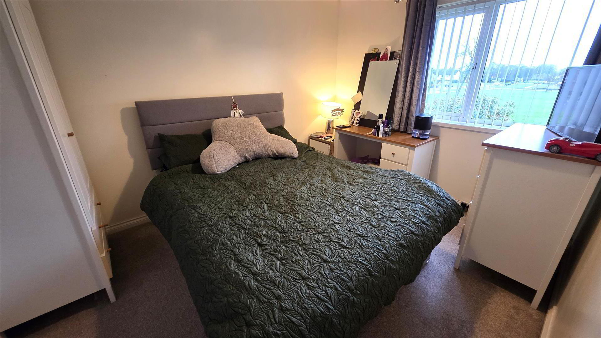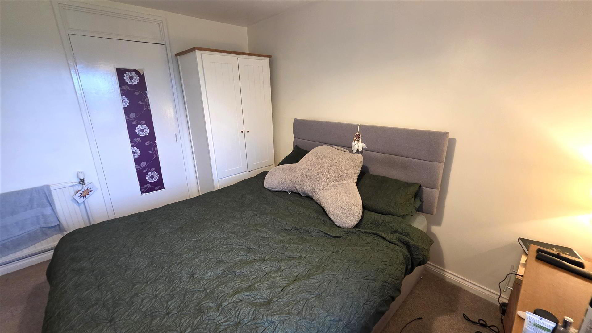 Integrated storage cupboard. Single radiator.