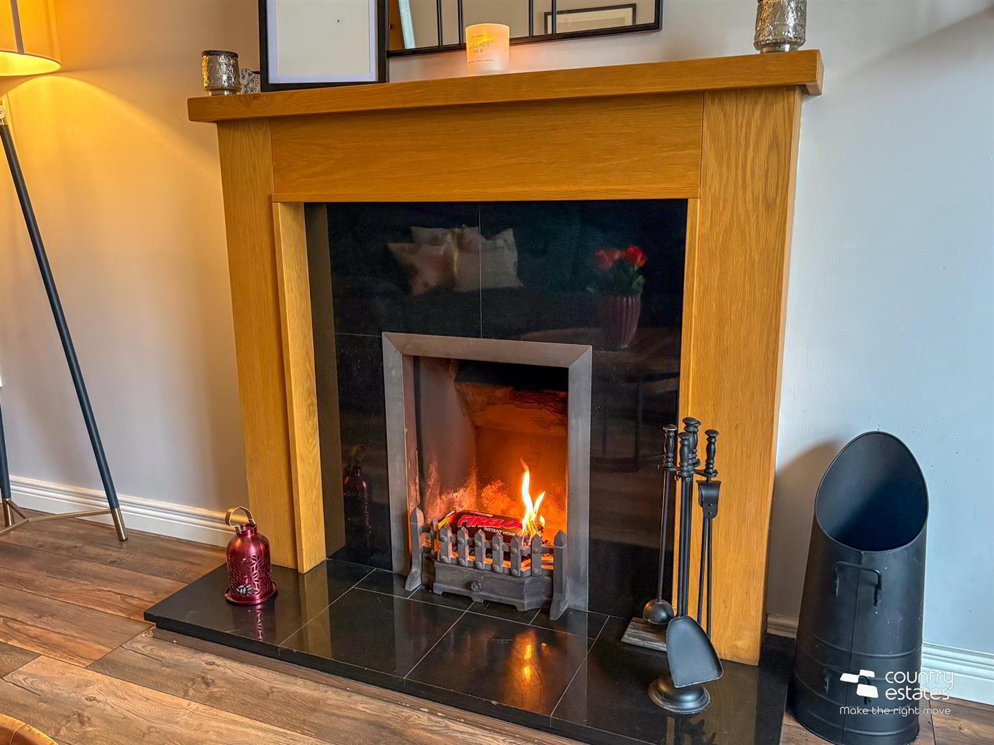 - Attractive modern fireplace with polished granite inset and hearth. Quality laminate flooring.