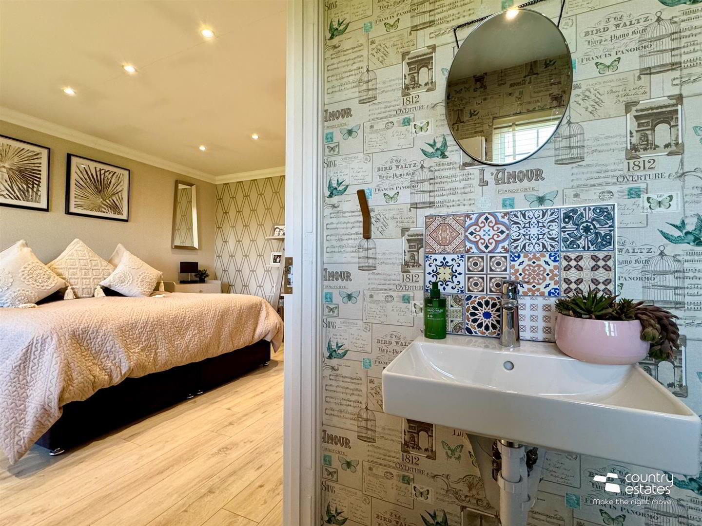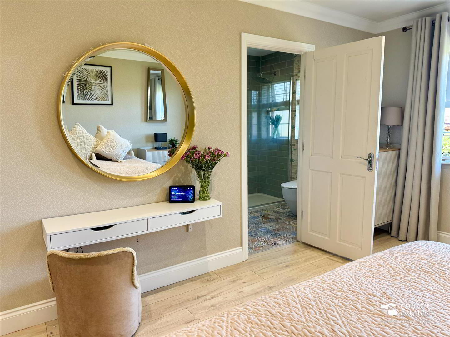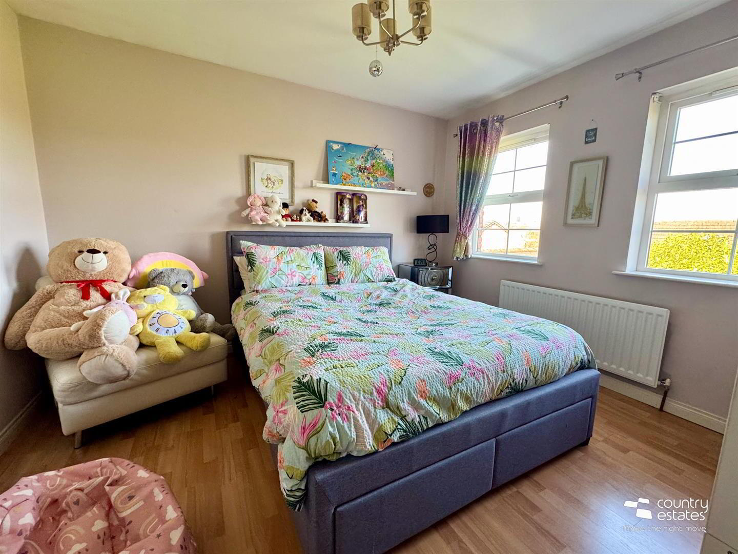 - Spacious principal bedroom featuring laminate flooring and low voltage recessed downlighting. The room enjoys pleasant rear-facing views over the gardens, extending across the surrounding open countryside, creating a comfortable and relaxing retreat.