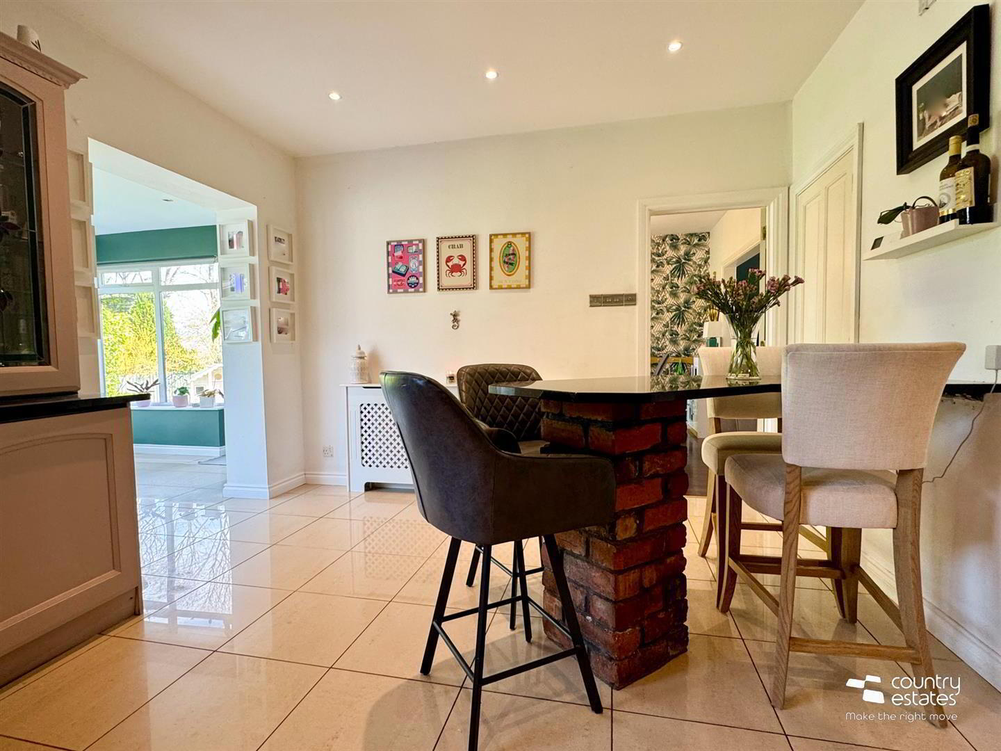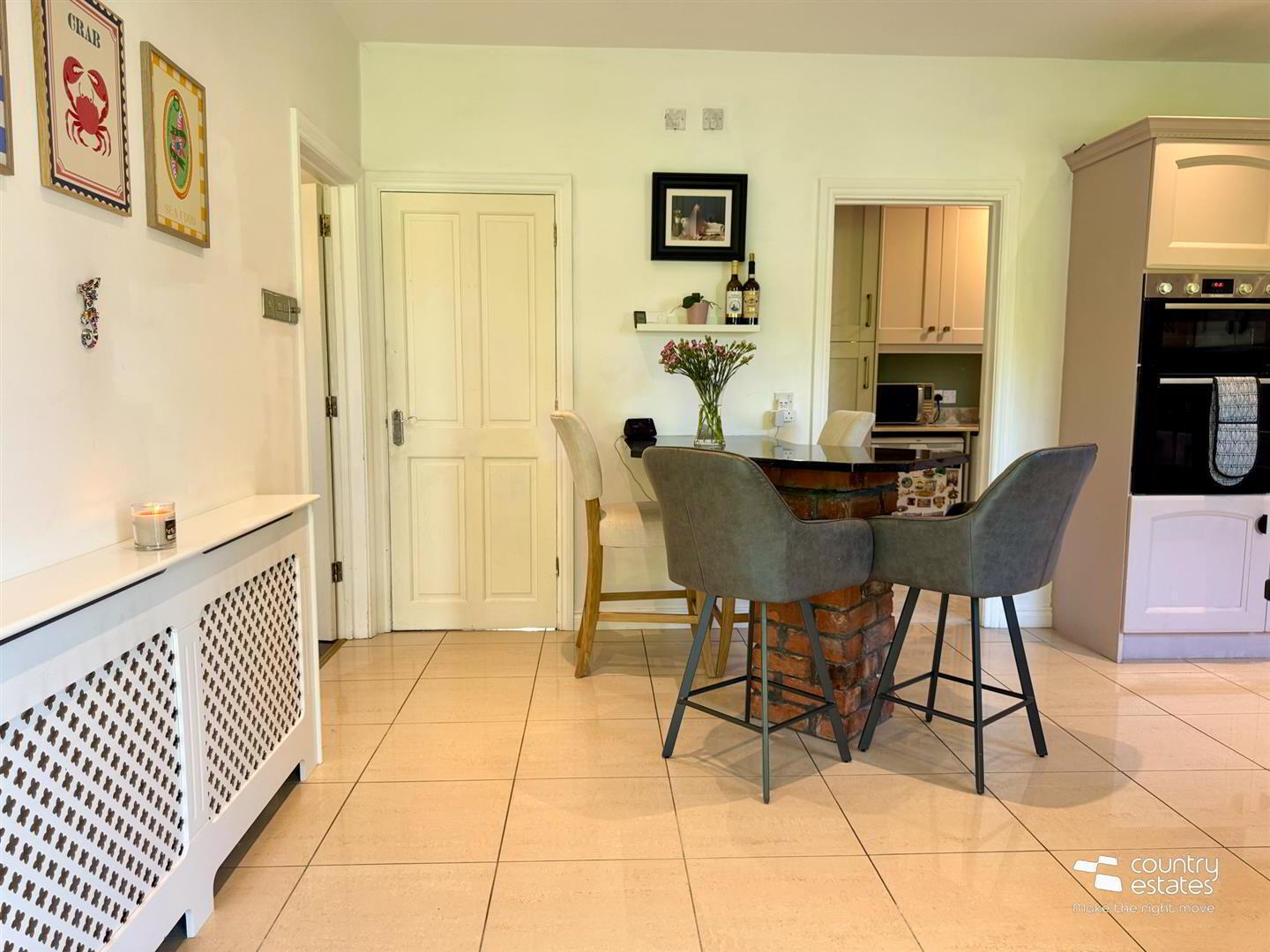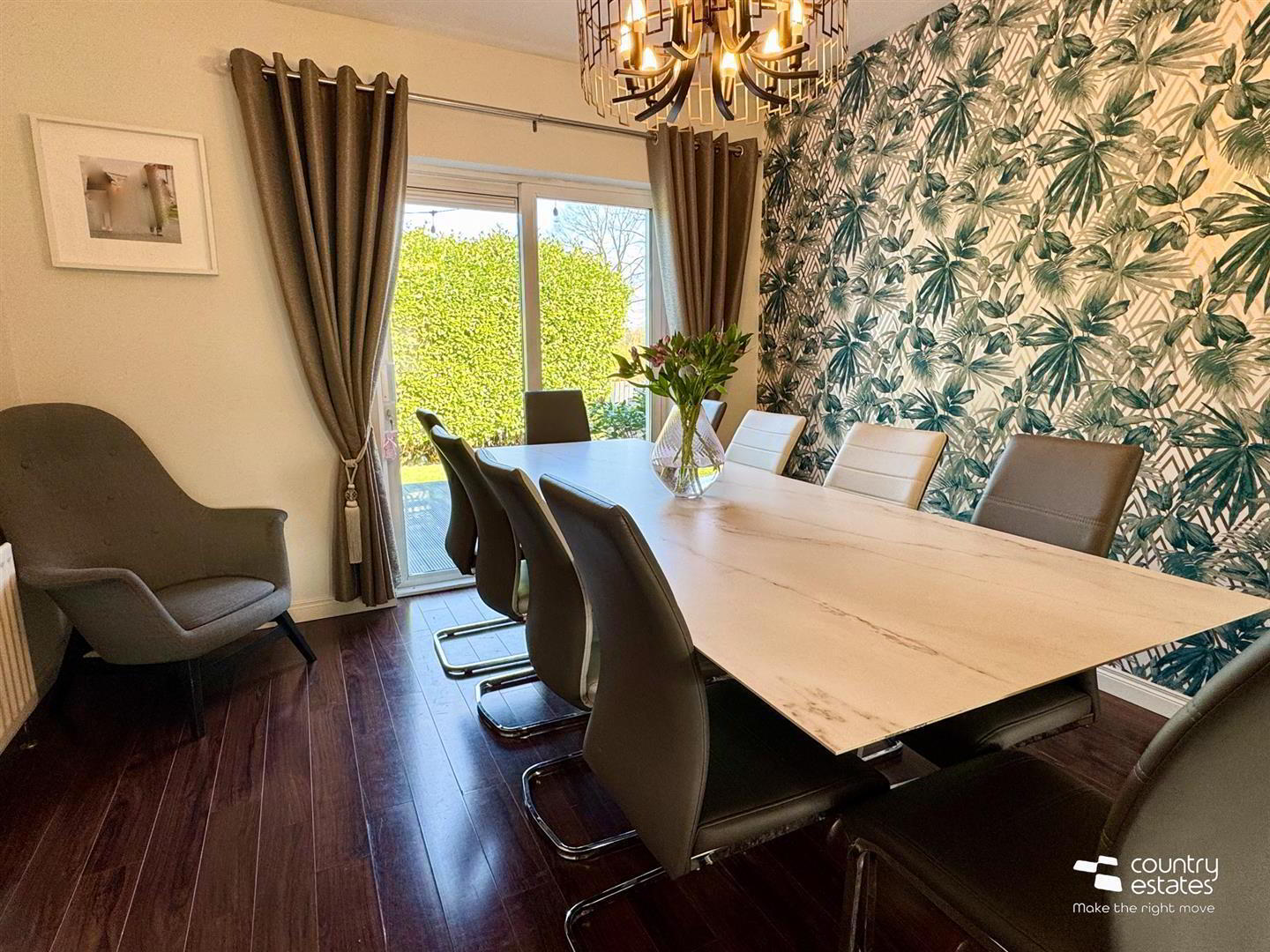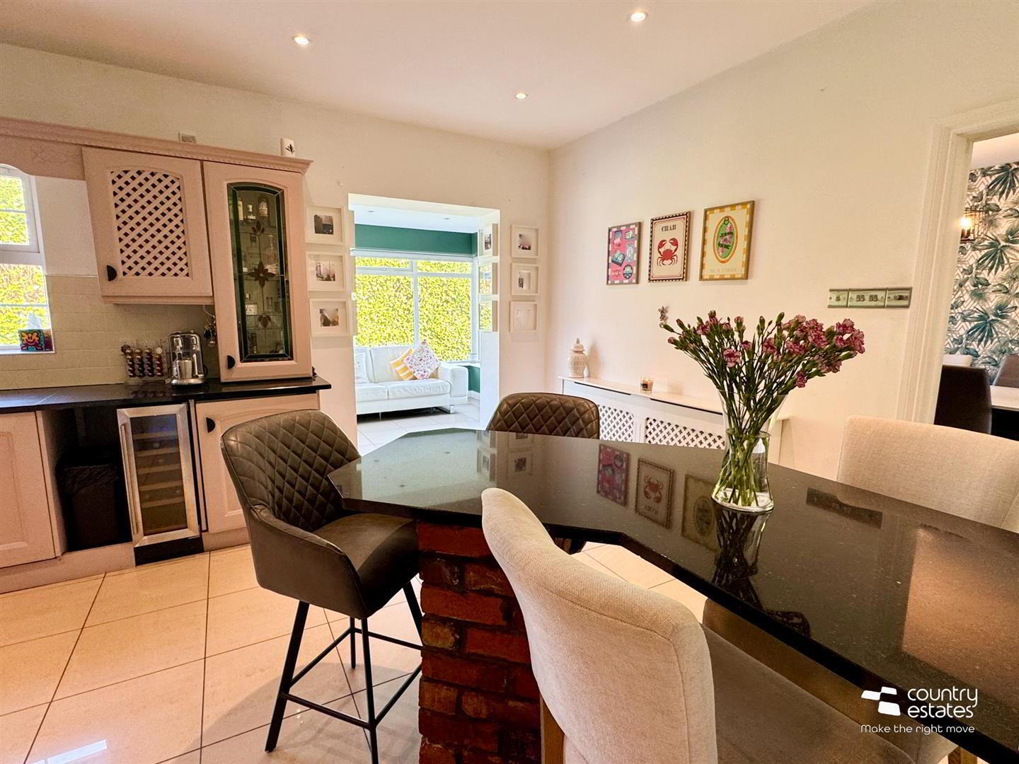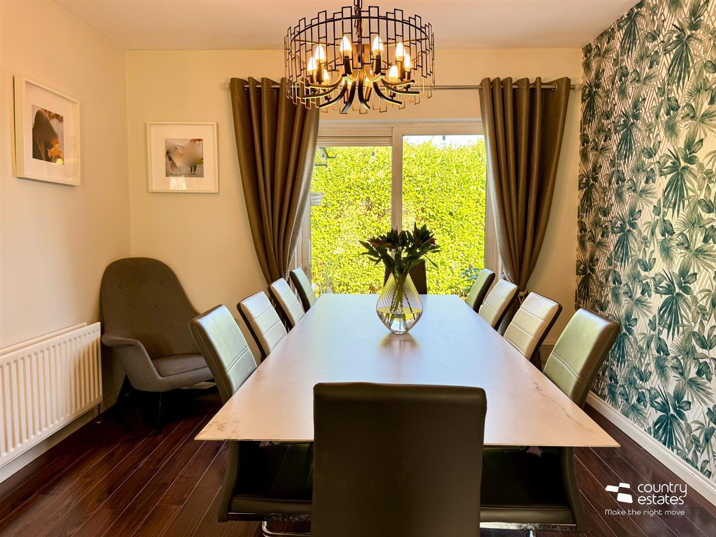 - Bright and spacious dining area with PVC double glazed sliding patio doors opening onto a decking area and leading to the rear garden. The room enjoys delightful views over the extensive, mature grounds, making it ideal for both everyday family dining and entertaining.