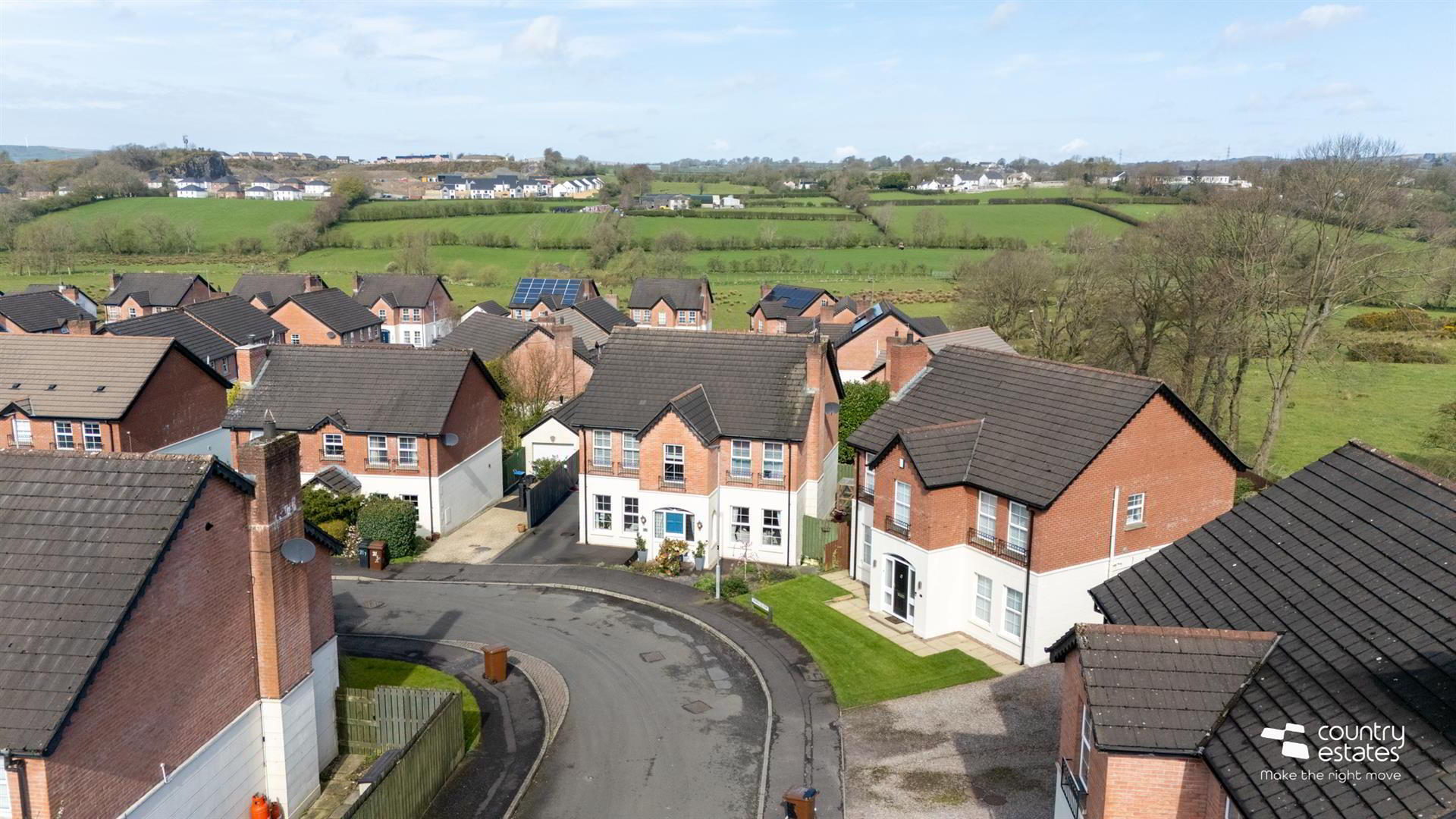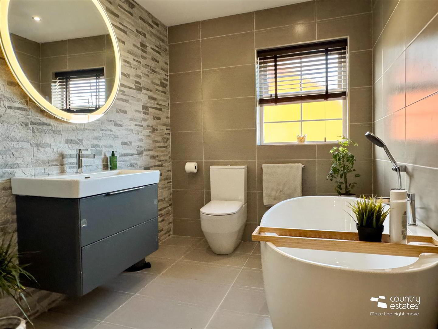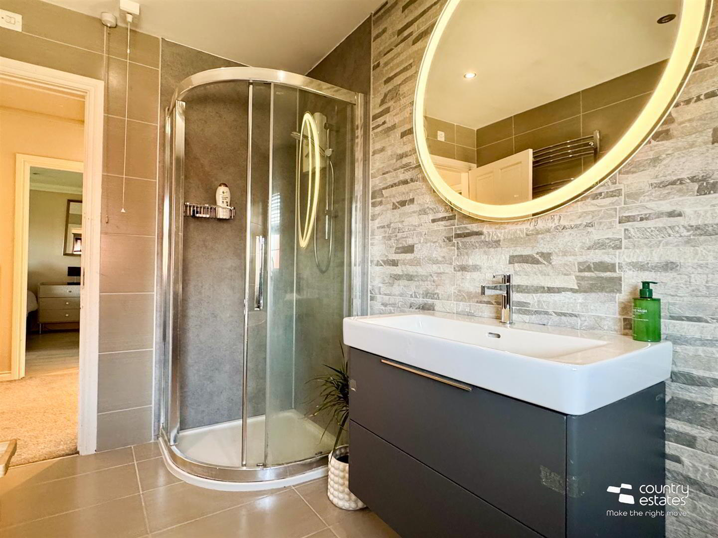 The home also benefits from a contemporary four piece family bathroom, while the master bedroom incorporates a luxurious ensuite. Occupying a substantial, mature corner plot rarely found within modern developments the property enjoys stunning, far-reaching rural views across the surrounding countryside.