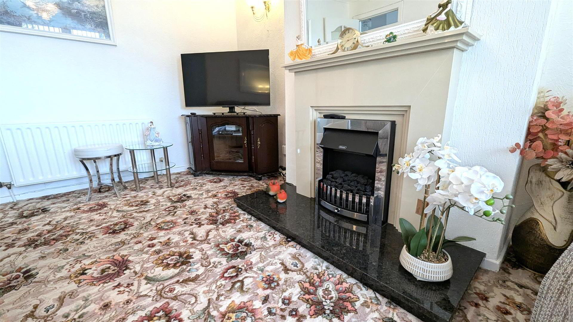 - Feature electric fire place with polished granite hearth, surround and mantle. Two double radiators.