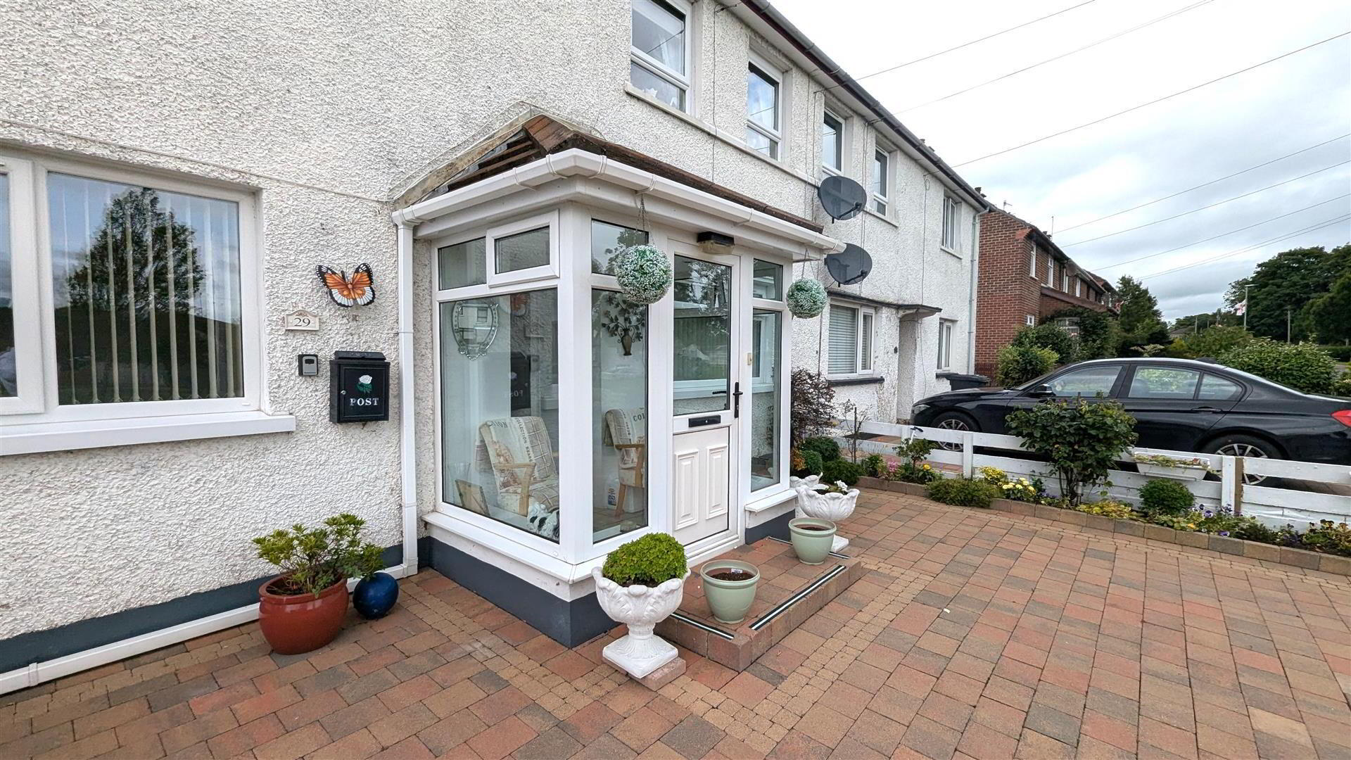 - Brick pavia driveway with side by side parking for two cars. Well stocked flower bed borders. PVC double glazed door to: