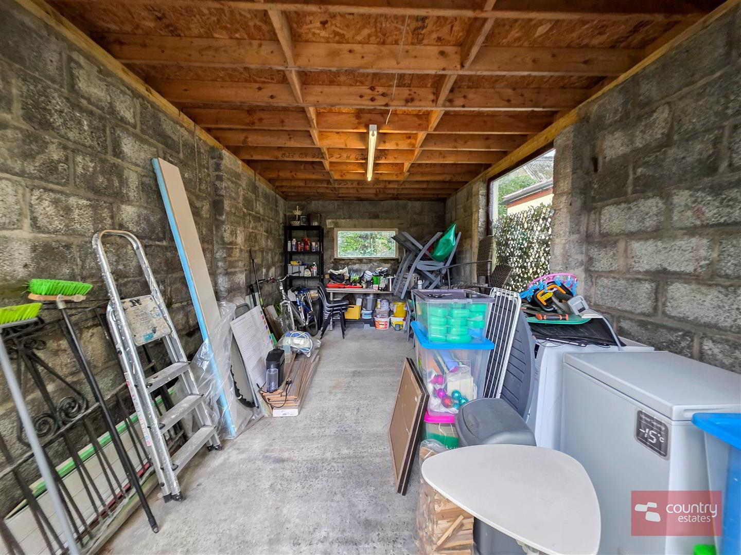 Externally, the property offers a concrete driveway leading to a matching detached garage with power and lights and a paved garden to front.
