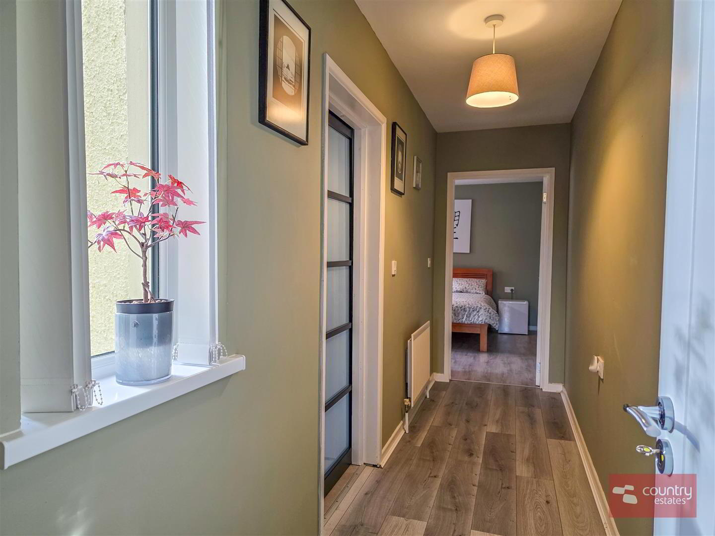 - PVC double glazed front door with leaded glass inset into spacious well presented entrance hall. Quality laminate flooring. Large vertical radiator.