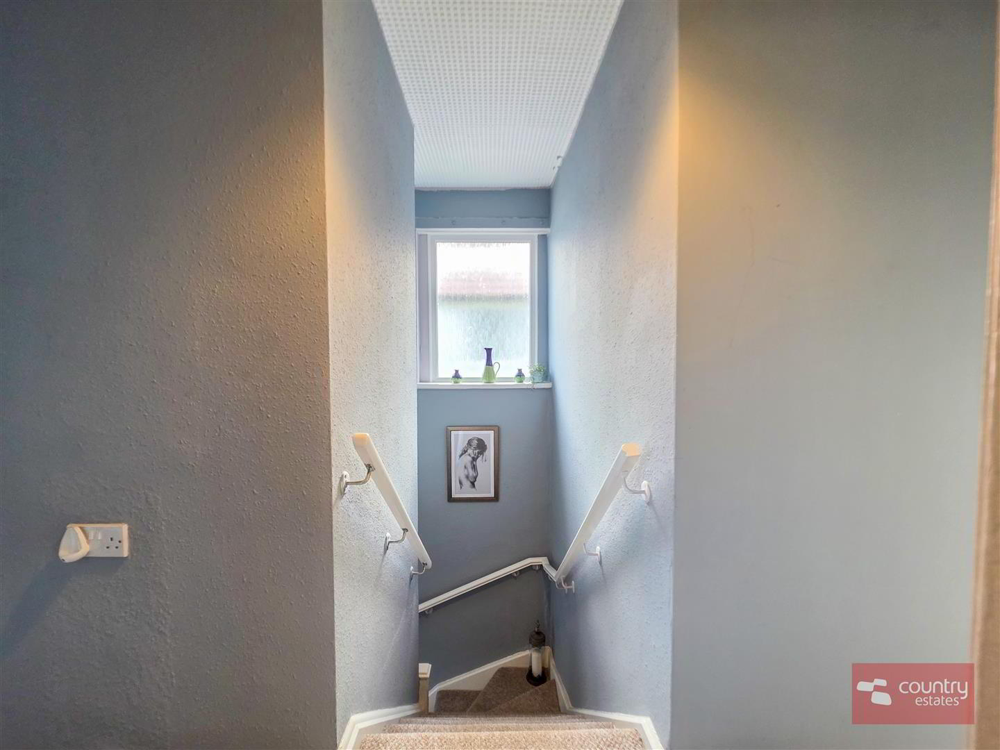 - Driveway to front and side, leading to matching detached garage. Paved garden to front. Screened by perimeter fence and hedgerow.