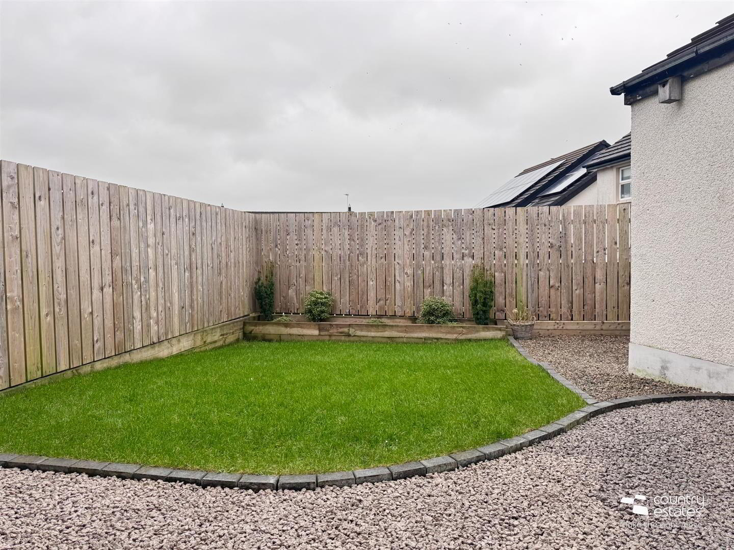 Private enclosed rear garden in lawn screened by perimeter fence.