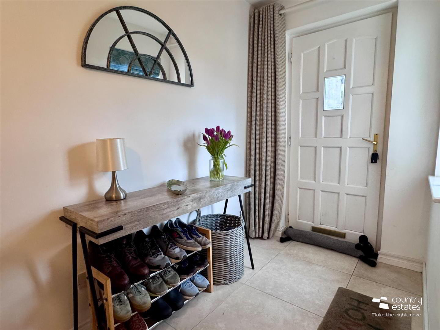- Ceramic tiled floor. Stairwell to first floor. Understairs storage cupboard.