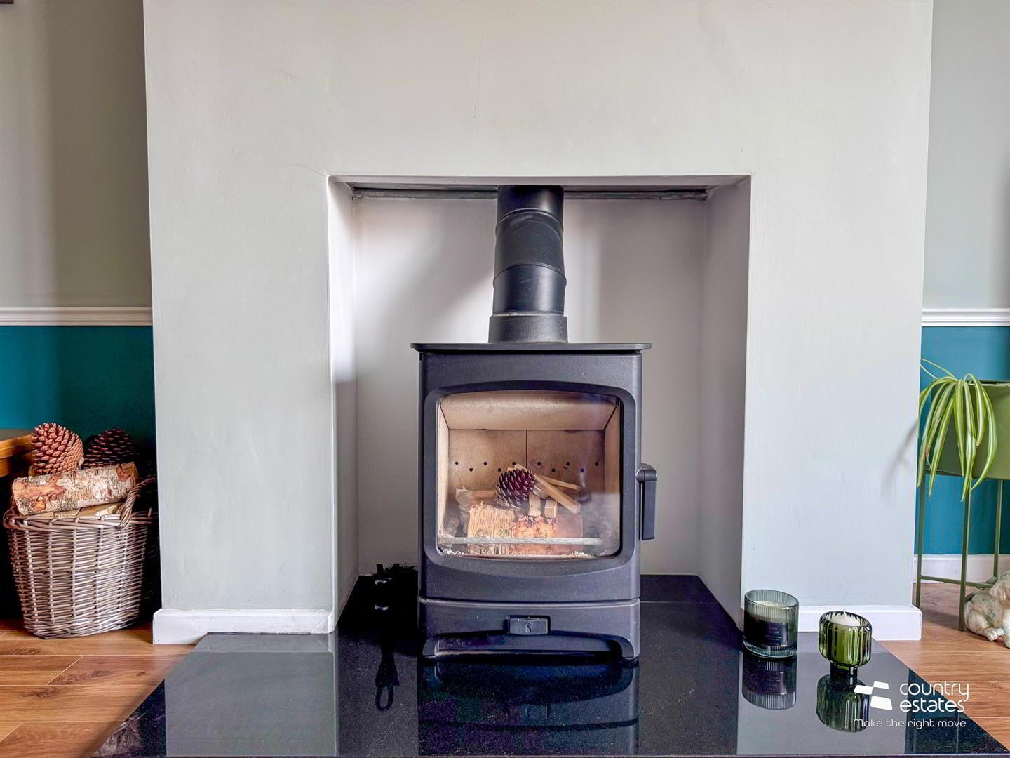 - Attractive inglenook style fireplace with cast iron wood burning stove inset on polished granite hearth. Quality oak laminate plank flooring.