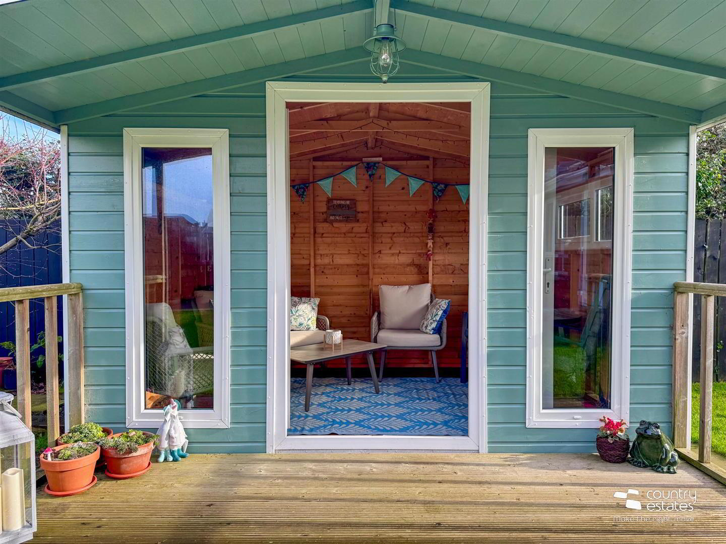 Fully enclosed private rear garden finished in lawn and screened by perimeter fence. Paved patio area and paved walkways.
