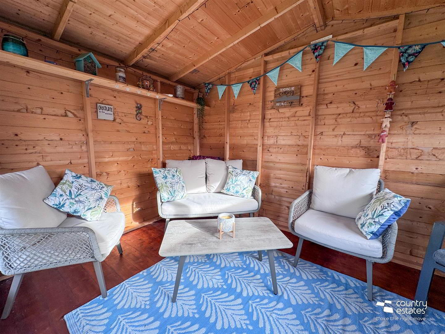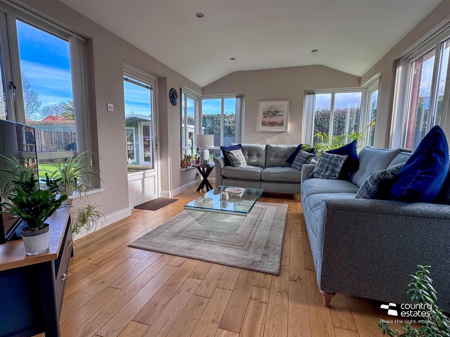 - Feature vaulted ceiling with recessed low voltage lighting. Dual window aspect with feature double glazed corner windows. PVC double glazed door leading to rear garden.
