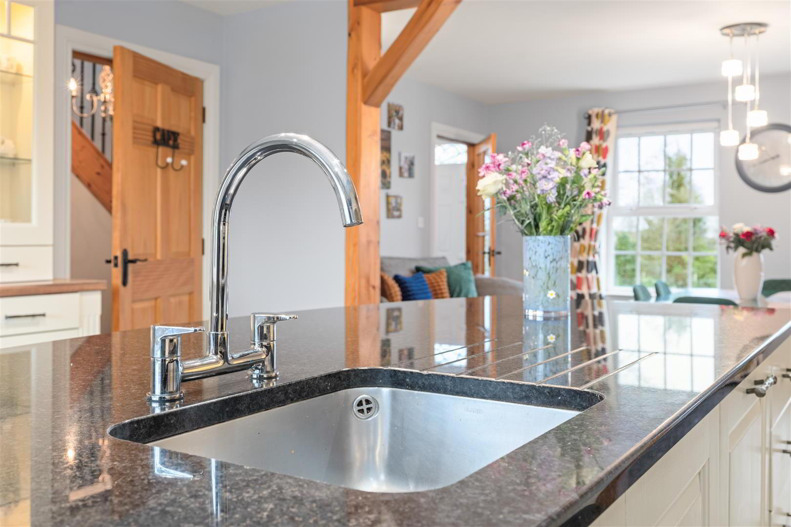 • Open plan large kitchen featuring a large kitchen island and leading into informal dining