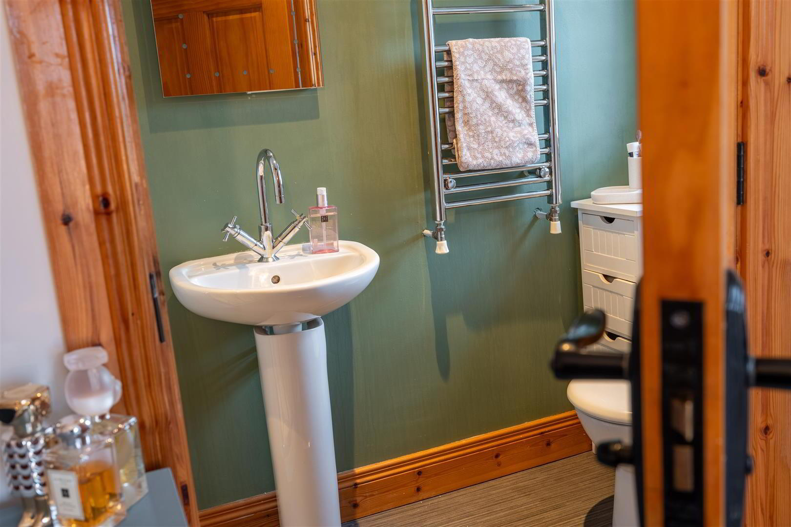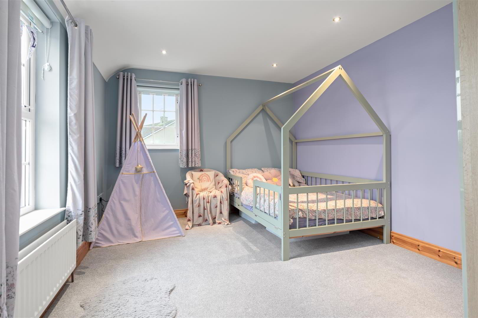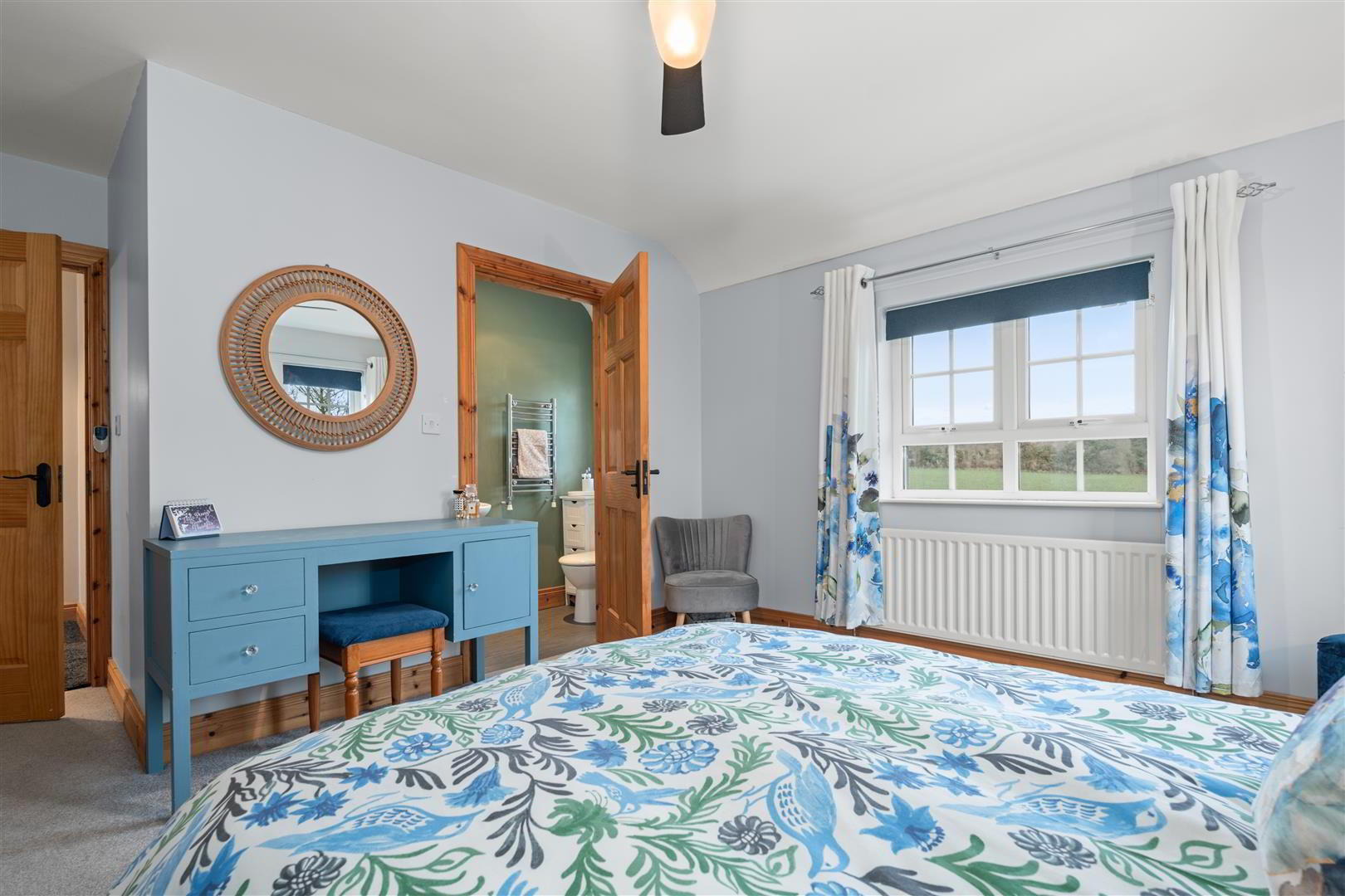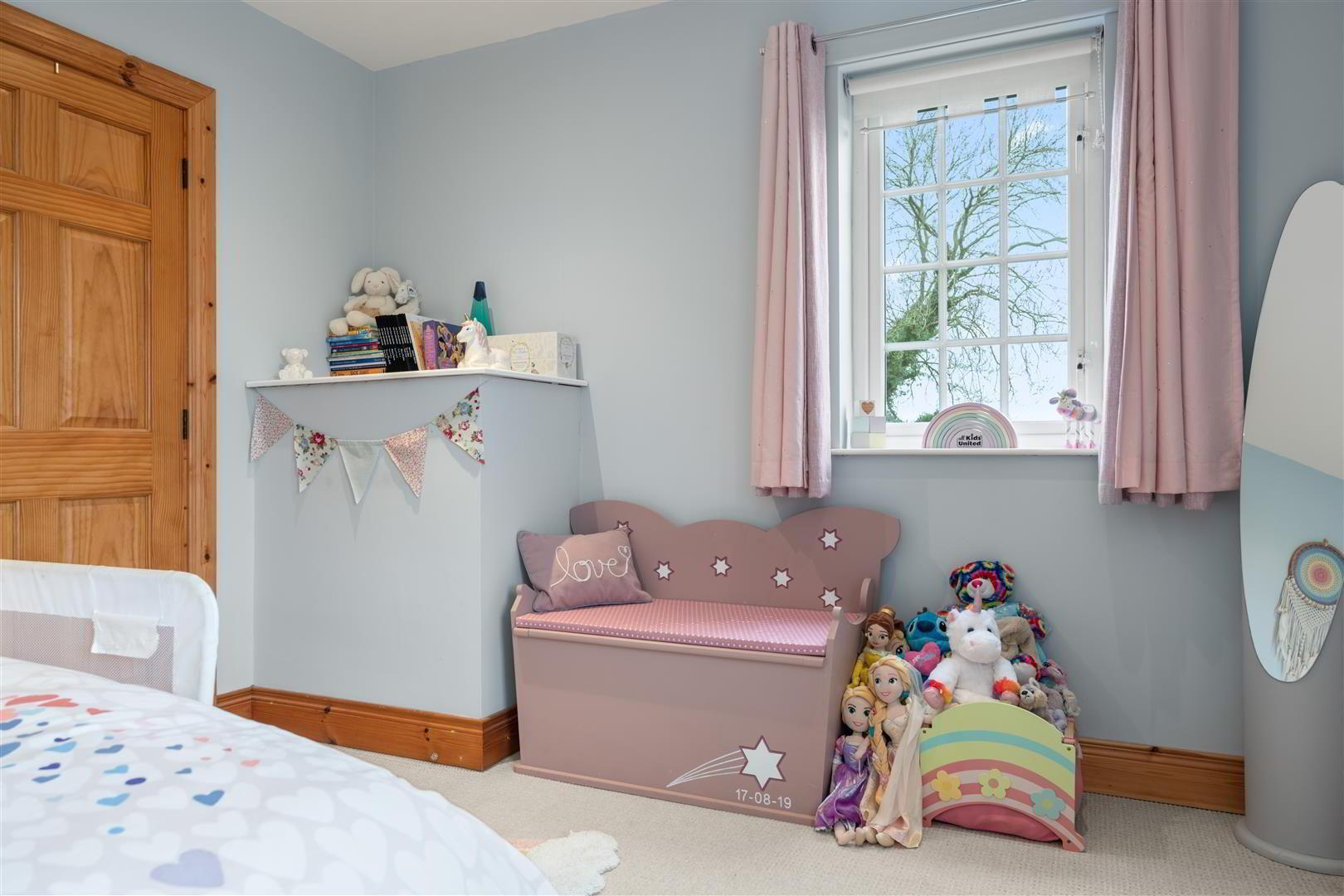 Dual aspect windows with views over the surrounding countryside. Low voltage down lighting. Integrated storage cupboard with clothing rails and shelving. Double radiator.