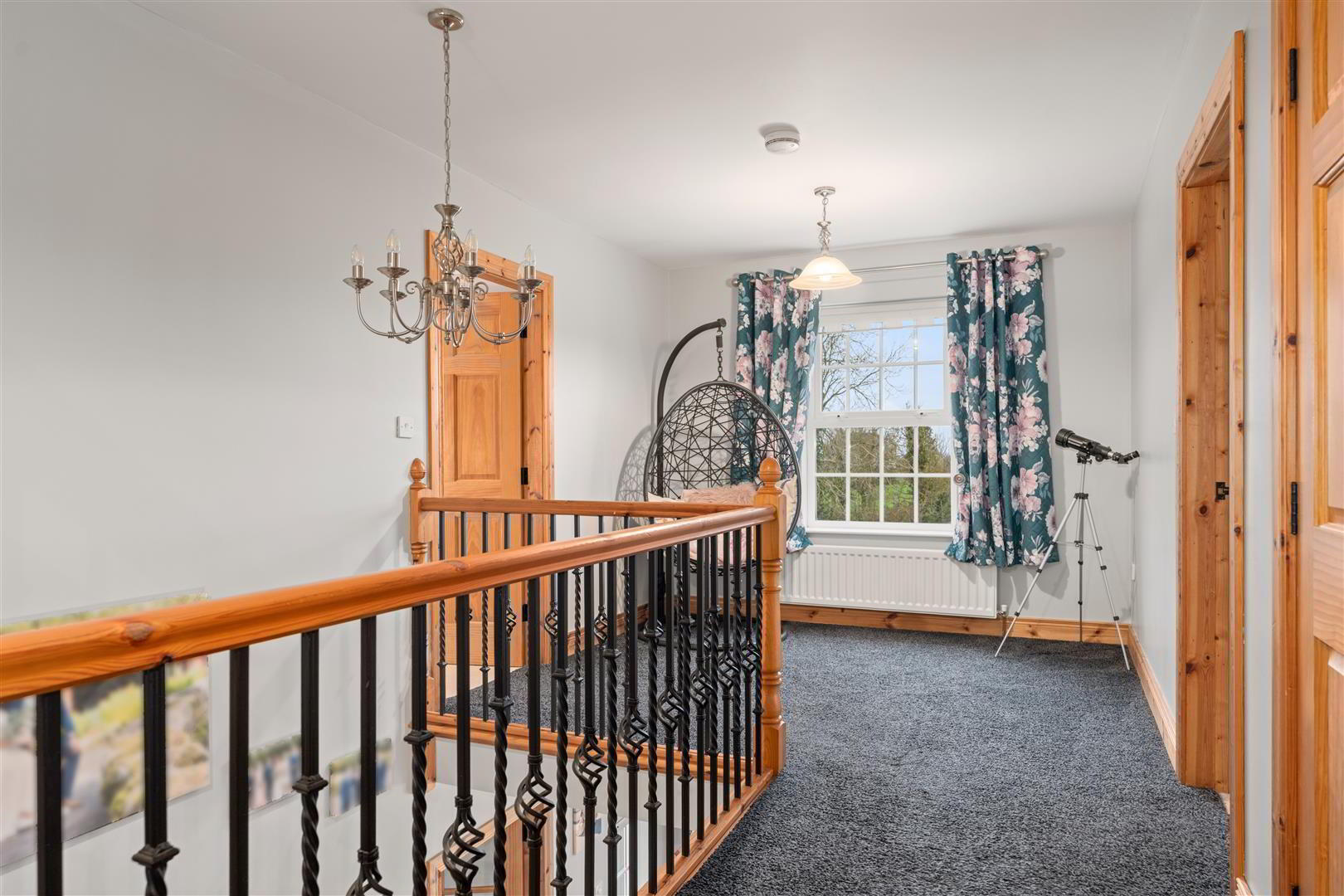 Access to loft via pull down wooden loft ladder. Hot press with pressurised cylinder, shelving and single radiator. One single and one double radiator to landing.