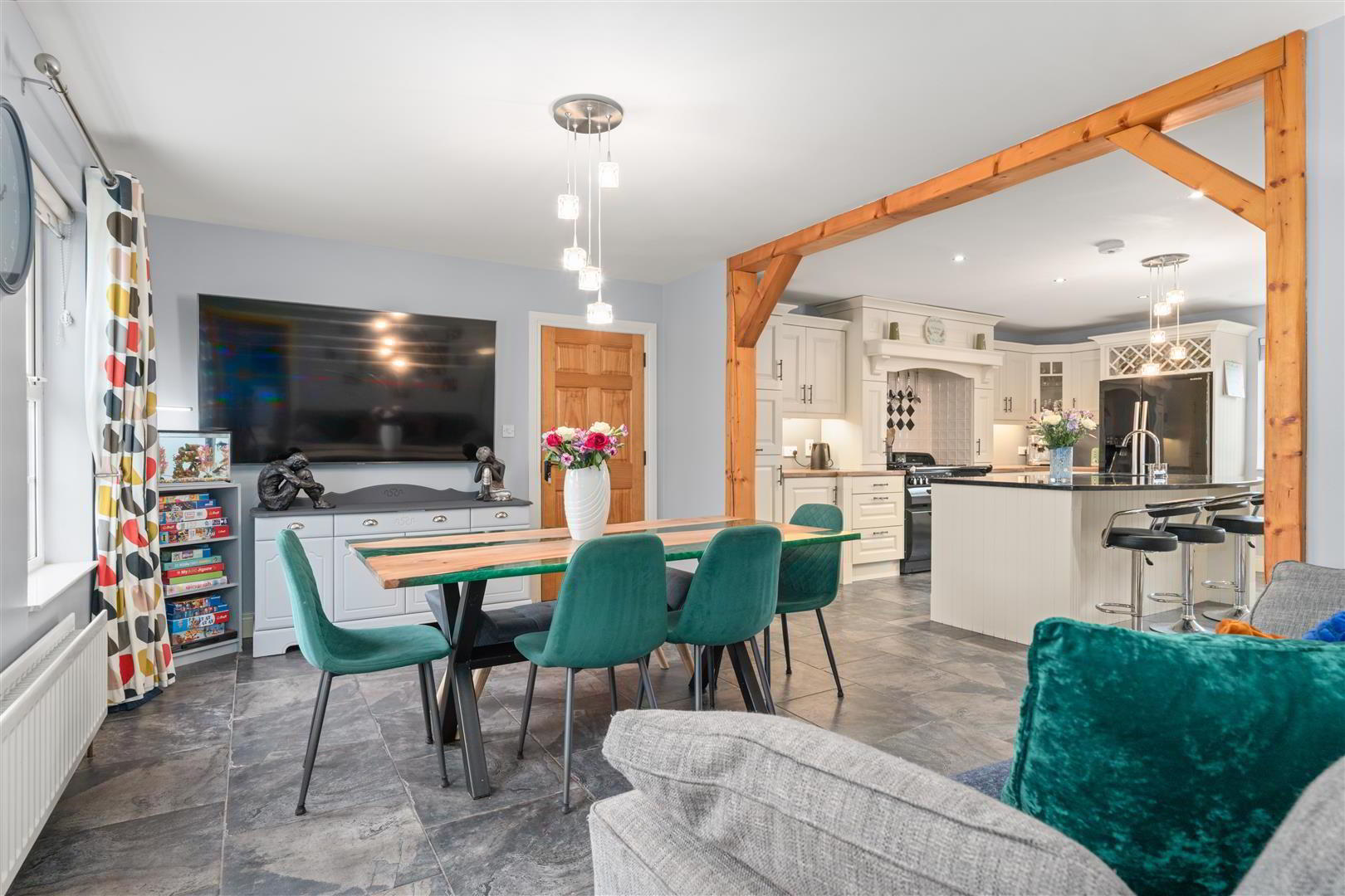 The ground floor comprises two spacious reception rooms, a large fully fitted kitchen with informal dining area, separate utility room, and a ground floor WC. A large integral garage completes the ground floor and offers excellent potential for annex accommodation, subject to the necessary planning permissions.
