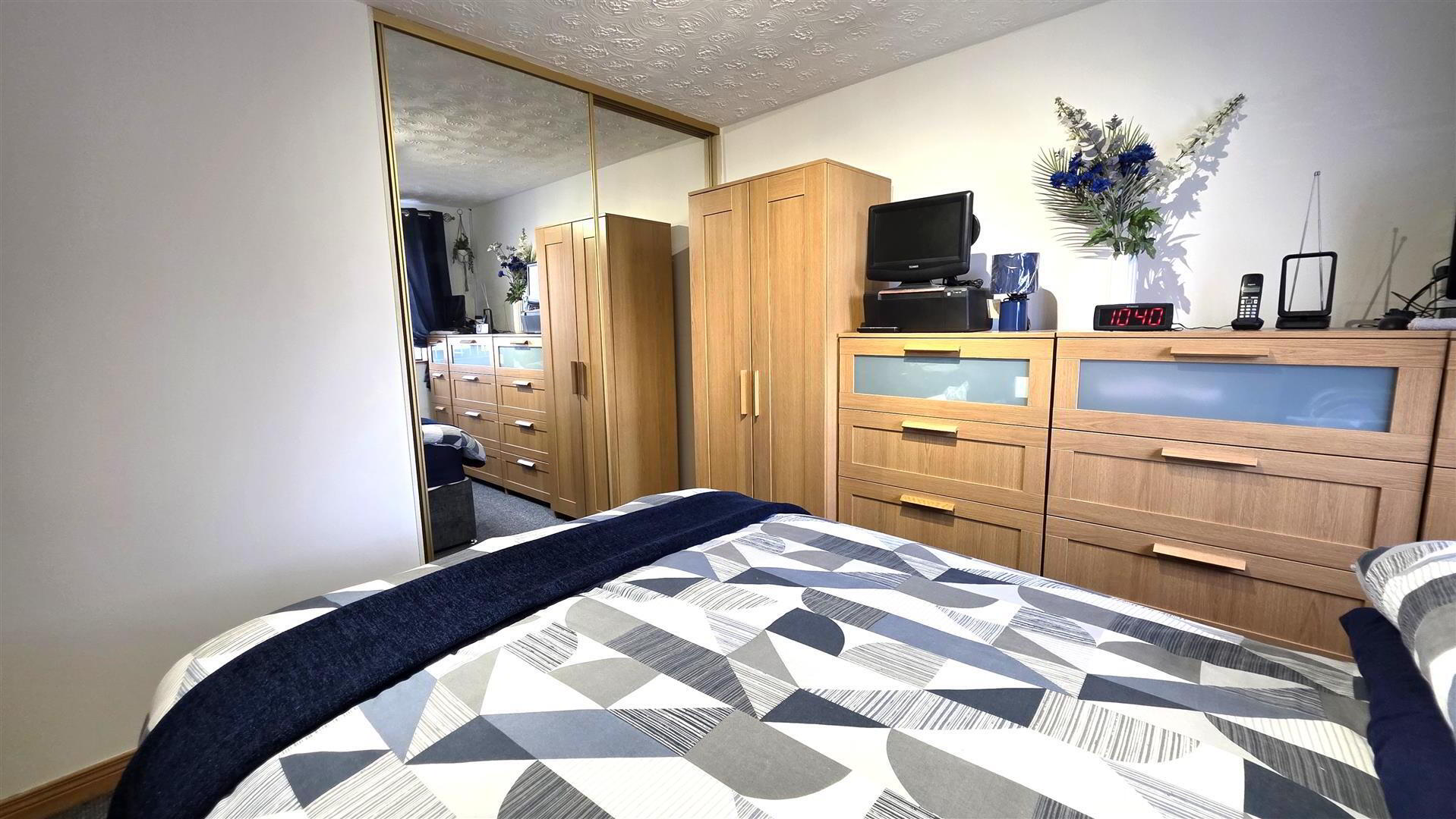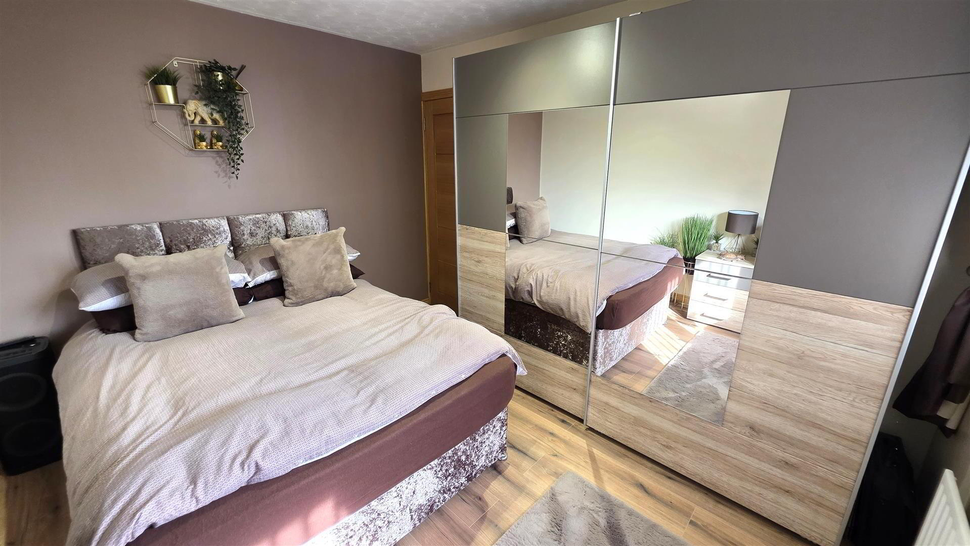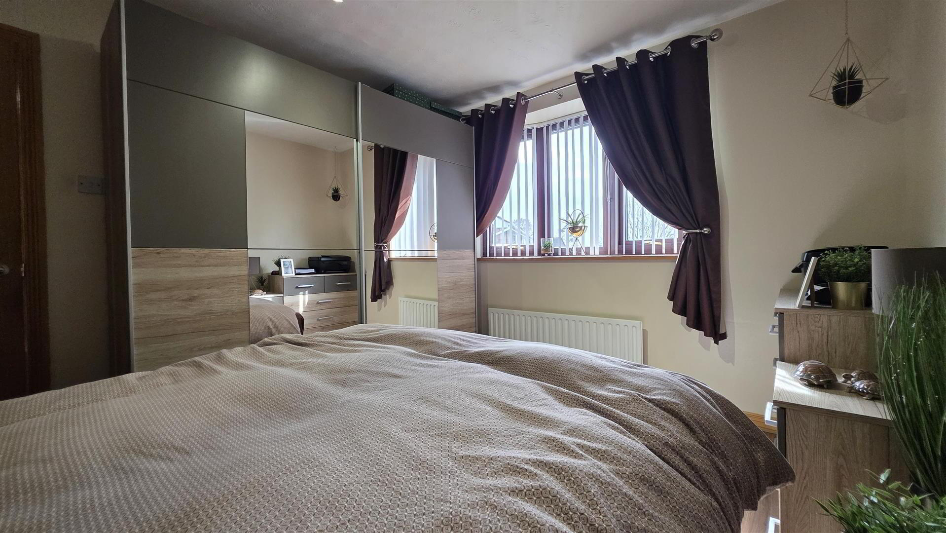 - Integrated bedroom storage with sliding mirror doors. Single radiator.