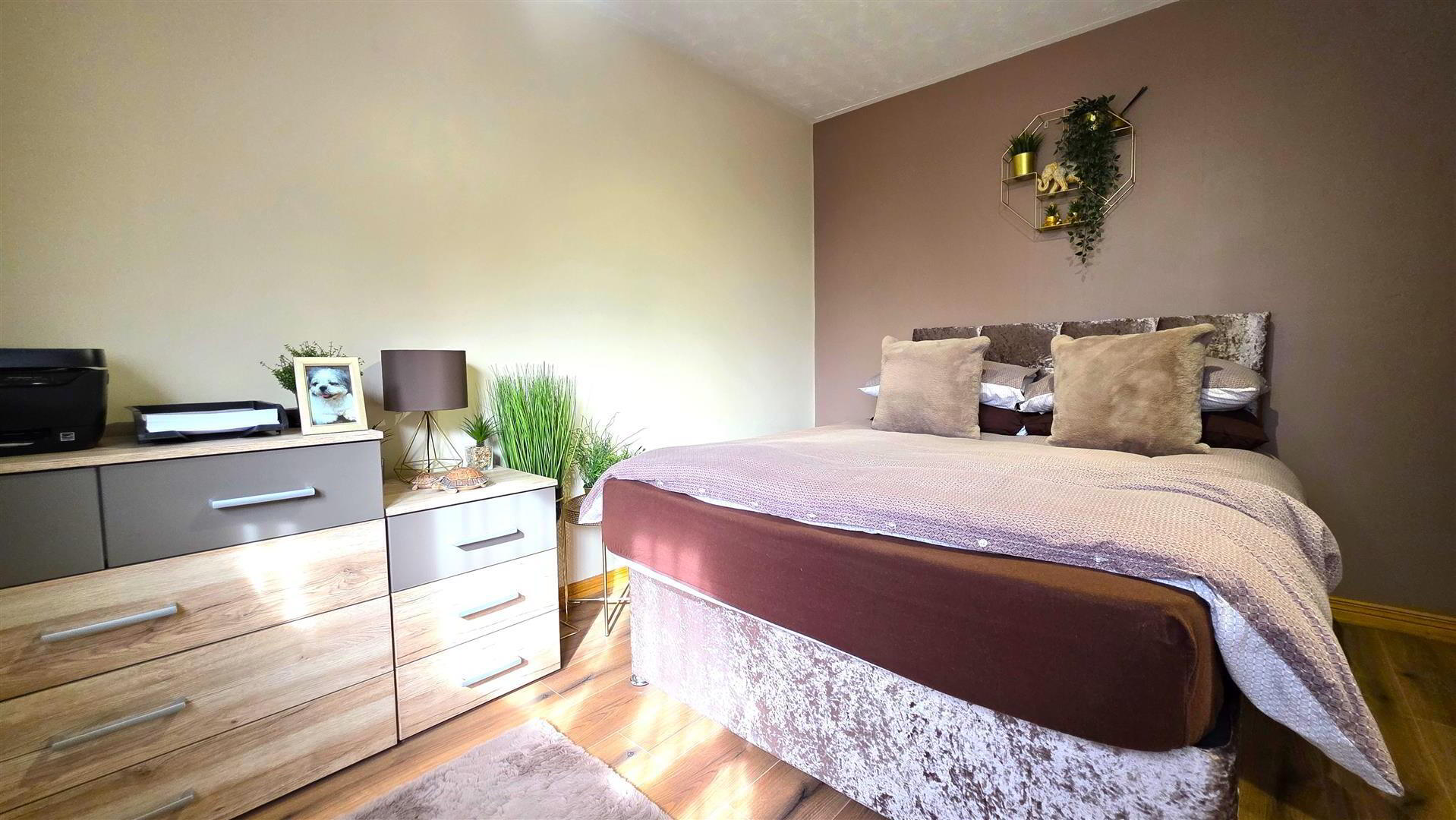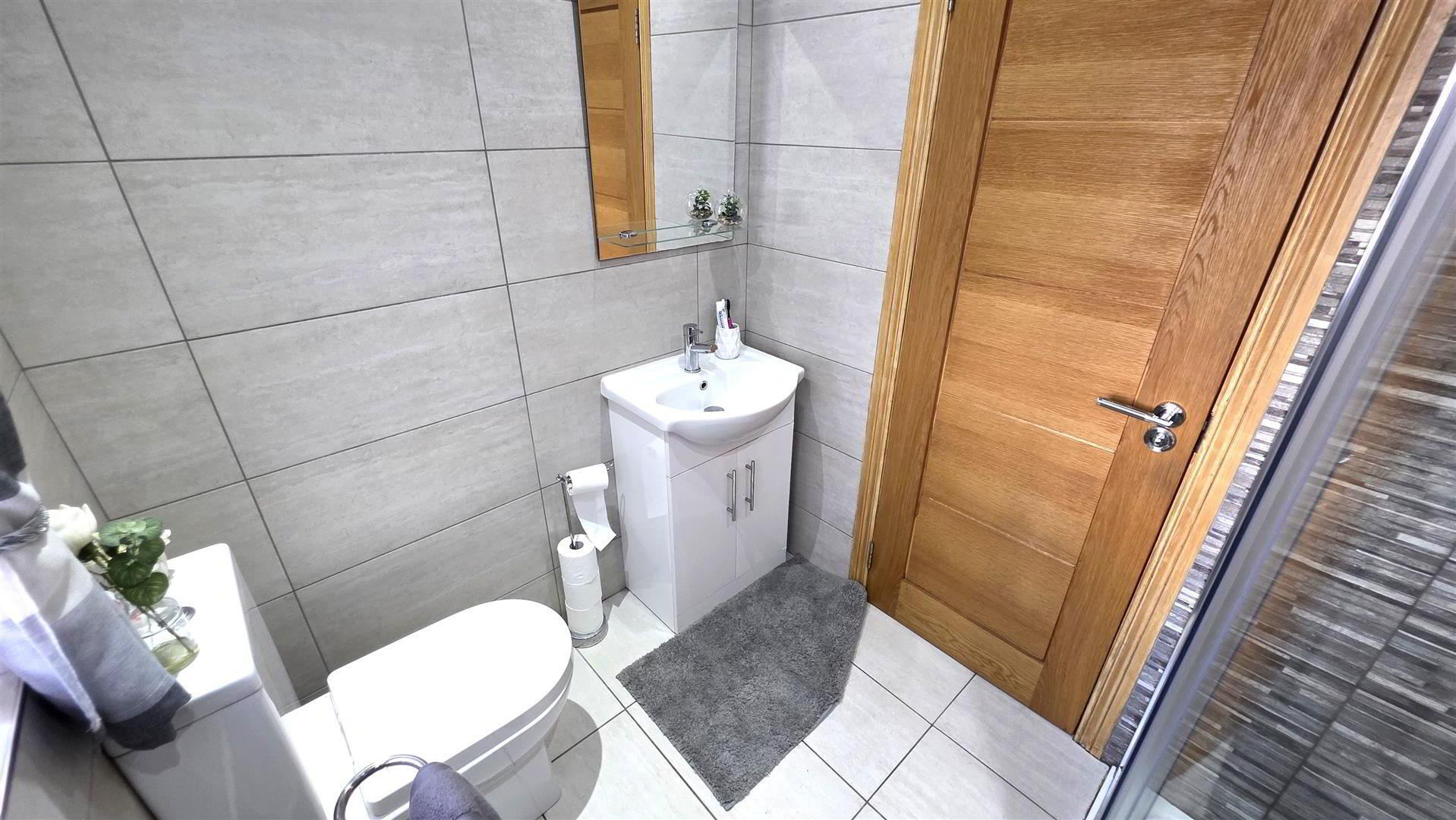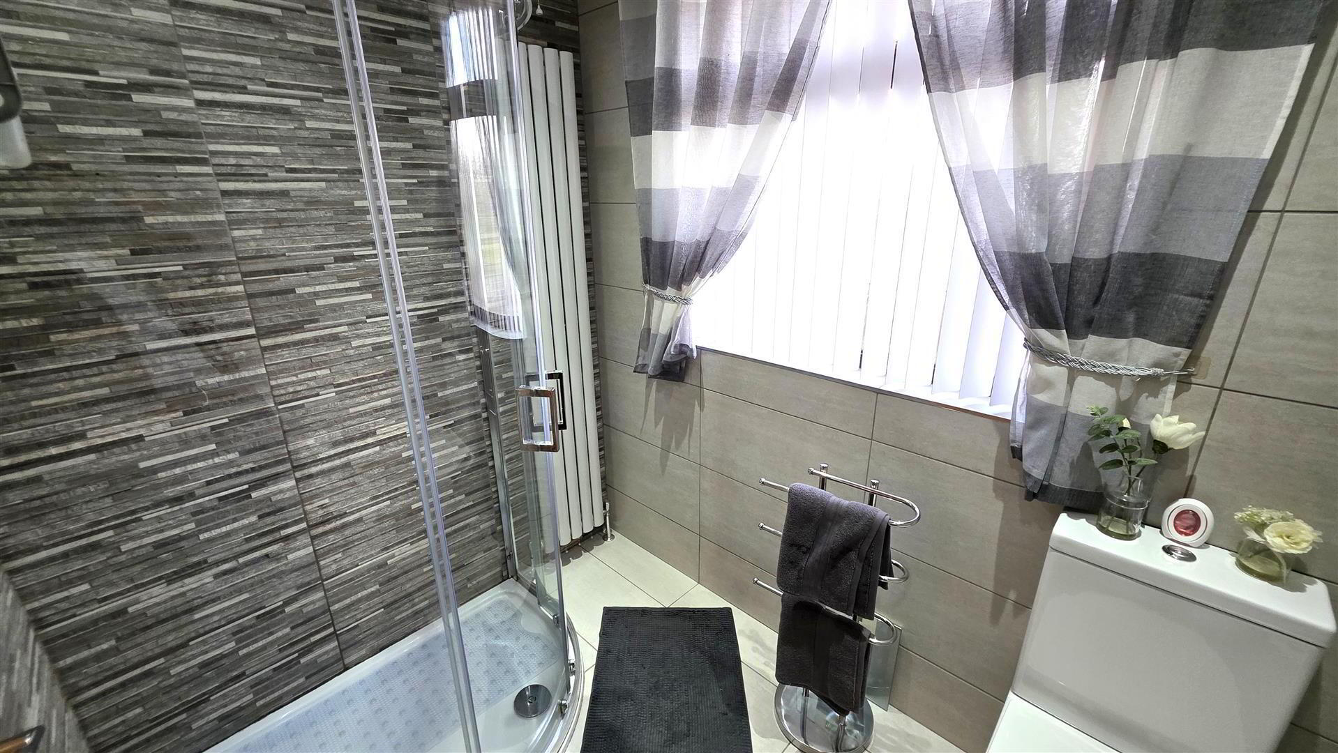 The home has been enhanced by a number of quality upgrades, including the installation of internal oak doors, a convenient ground floor W/C, and a luxurious shower room featuring a large corner quadrant enclosure with thermostatic shower.