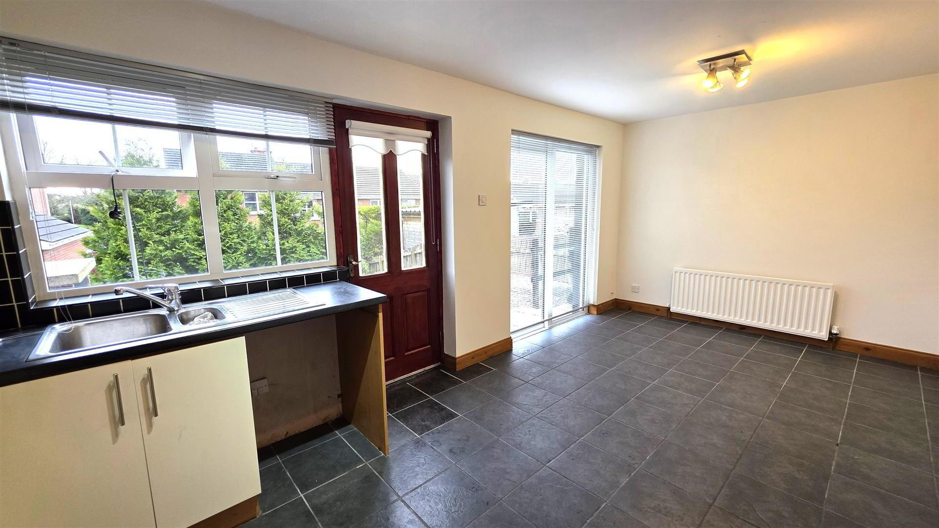 - Full range of cream, contemporary style, high and low level kitchen units with contrasting work surfaces and splashback tiling. One and one quarter bowl stainless steel sink unit with chrome mixer tap. Integrated four ring halogen hob with stainless steel pyramid style, overhead extractor fan. A low level combination oven and grill. Space for fridge freezer and washing machine. Fully tiled flooring. Two single radiators. Bevelled glass double glazed two panel hardwood door to rear. PVC double glazed door sliding patio doors to the rear.