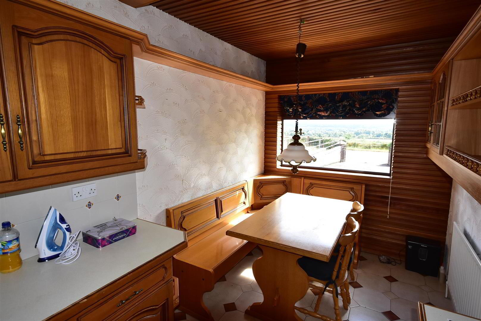 - with in-situ bench seating around free standing table. Matching "Alwood" high and low level units with glazed display and open plate rack. Part wood strip wall with window providing superb view over the Six Mile Valley. Fully tiled floor. Wood strip ceiling. Single radiator.