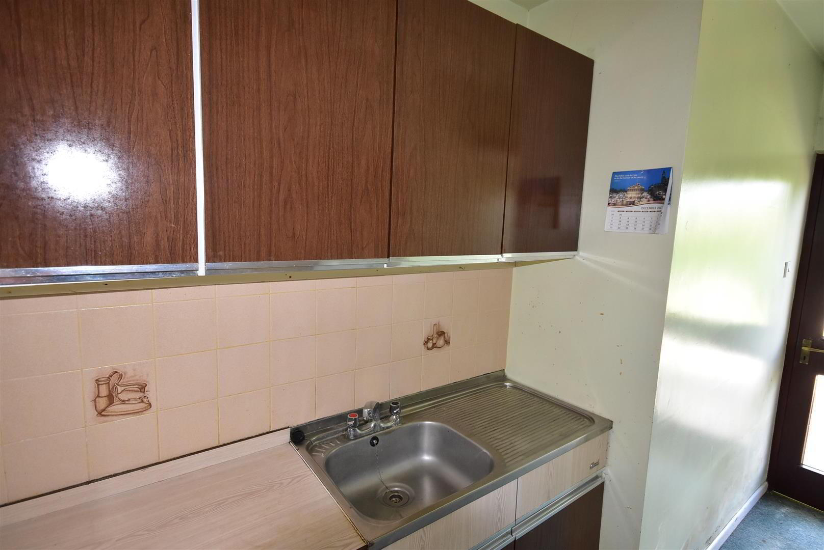 - Range of high and low level units with contrasting work surfaces. Single drainer stainless steel sink unit and mixer tap. Single radiator. Hard wood single glazed door to rear. 15 pane glass door to: