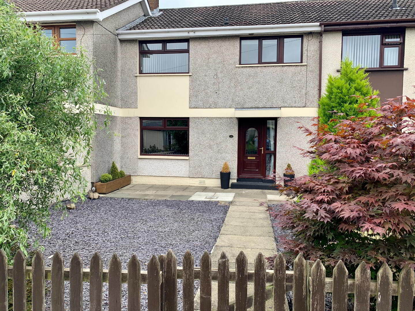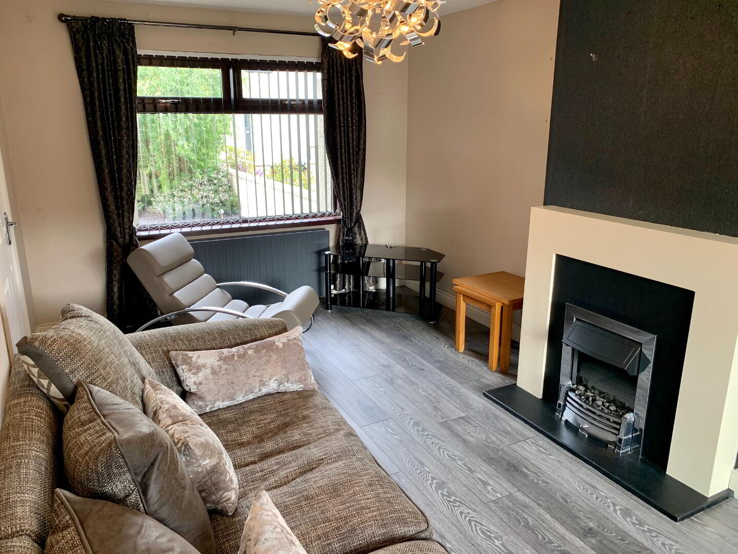 ENQUIRES BY EMAIL ONLY- NO PETS- A very well presented 3 bedroom property with a fresh contemporary feel throughout. The property has been tasteful decorated and benefits from a modern kitchen, large living dining room and 2 of the bedrooms supplied with wardrobes. To the front is a stoned landscaped garden and to the rear an enclosed area for parking or use as a patio area. Good size garage also.