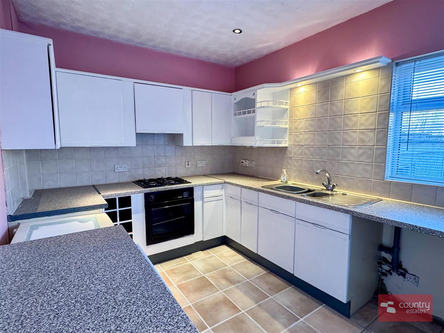 - Fitted with a range of high and low level units with contrasting work surfaces. Integrated oven with 4 ring hob. Inlaid stainless steel sink unit and mixer tap. Plumbed for automatic washing machine. Open ended corner displays. Recessed spot lights. Complimentary wall tiling. Ceramic tile floor. PVC double glazed back door.