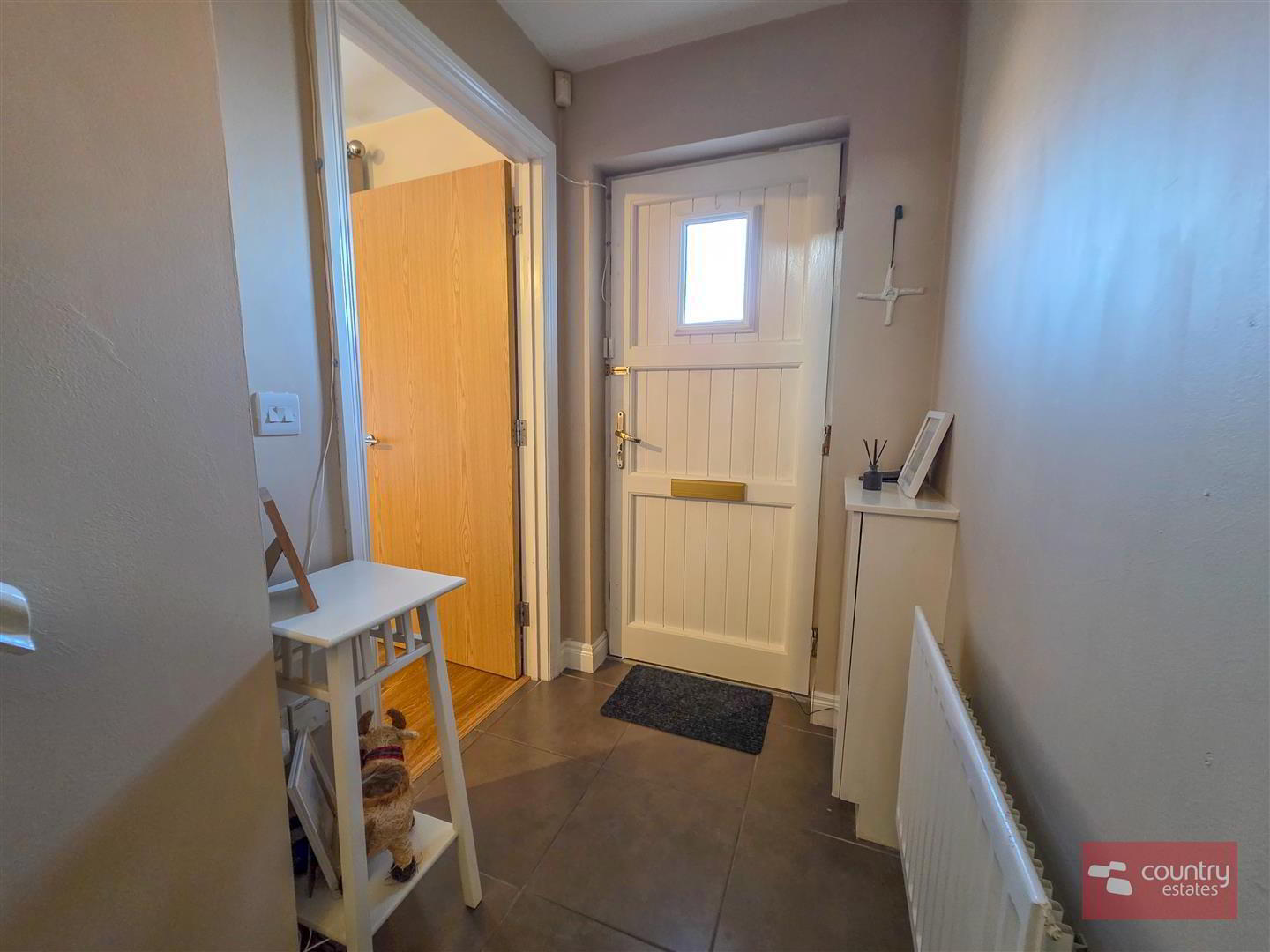 - Hard wood front door with double glazed inset into entrance hall with tiled floor.