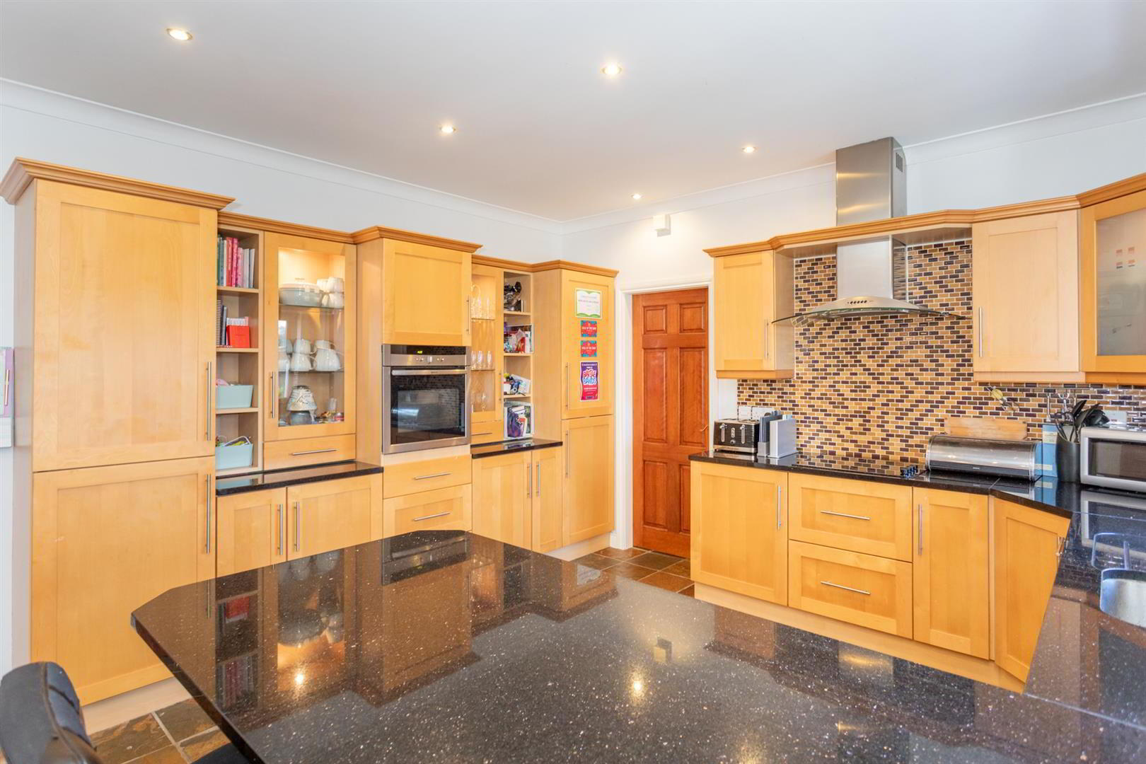 Full range of beech effect "Shaker" style high and low level units with glazed displays and polished granite work surfaces. Inlaid stainless steel sink unit with mixer taps and fluted drainer. Integrated four ring halogen hob with stainless steel and glass over head extractor with mid level combination oven and grill. Integrated fridge freezer and dish washer. Over window pelmet with low voltage down lights. Chinese slate floor to kitchen area. Double radiator and designer radiator. Open to Sunroom.