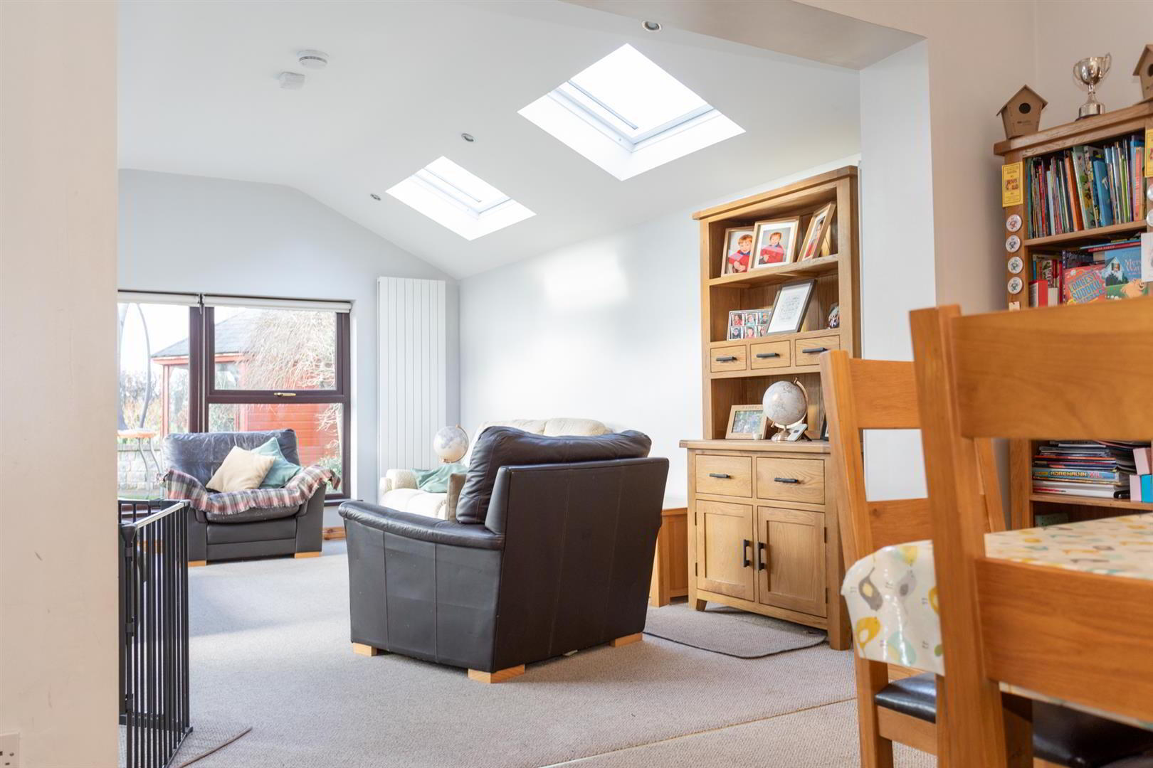 • Sunroom 17'1 x 13'6 with semi-vaulted ceiling and double glazed roof lights / PVC double glazed French doors to rear / Free standing cast iron multi solid fuel stove